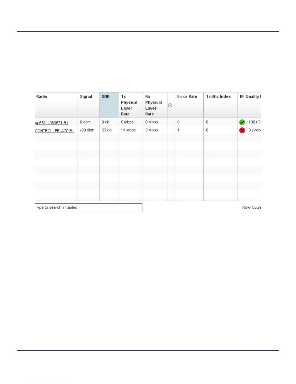SNR Displays the signal to noise ratio of all associated wireless clients.