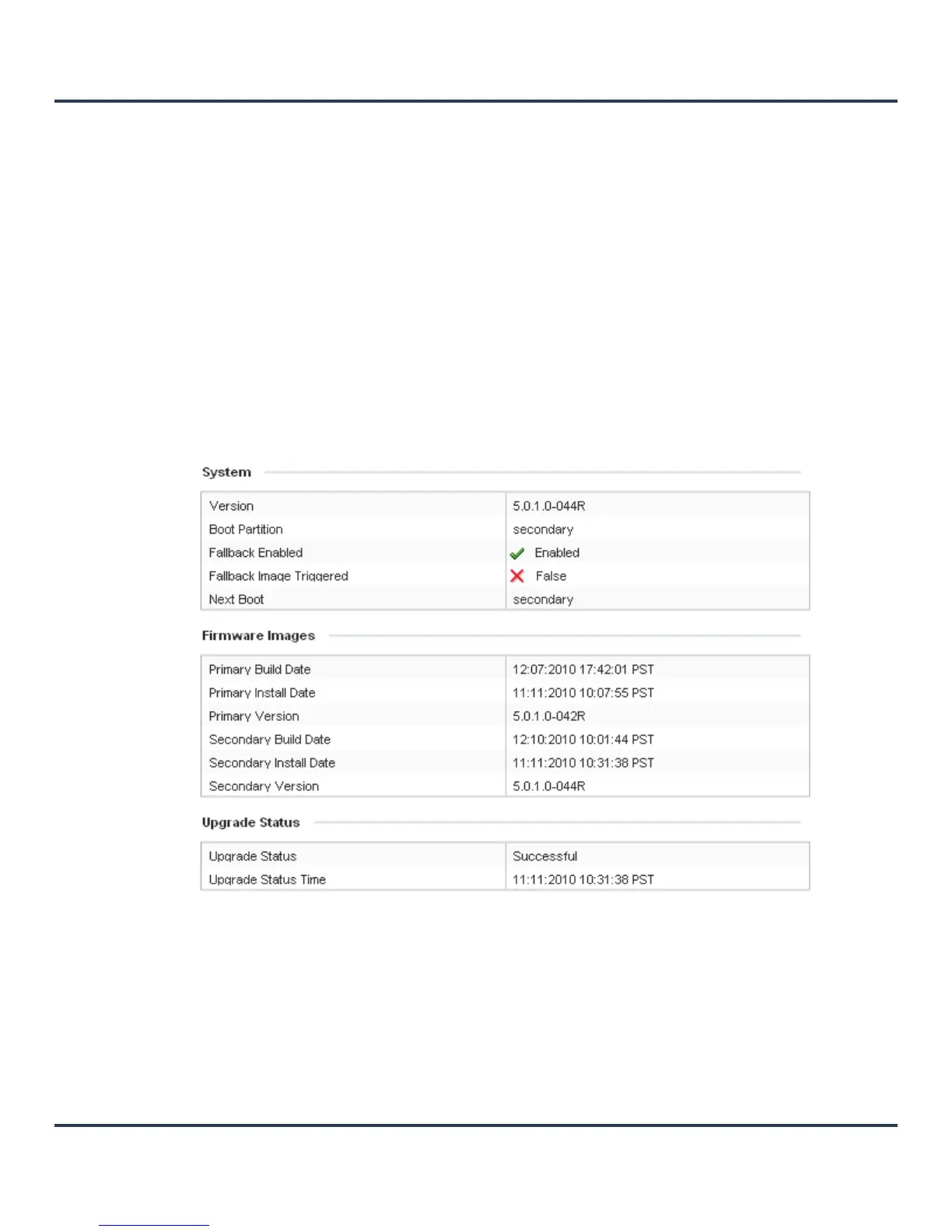 version information, such as the installed firmware image version, the boot image and upgrade status.