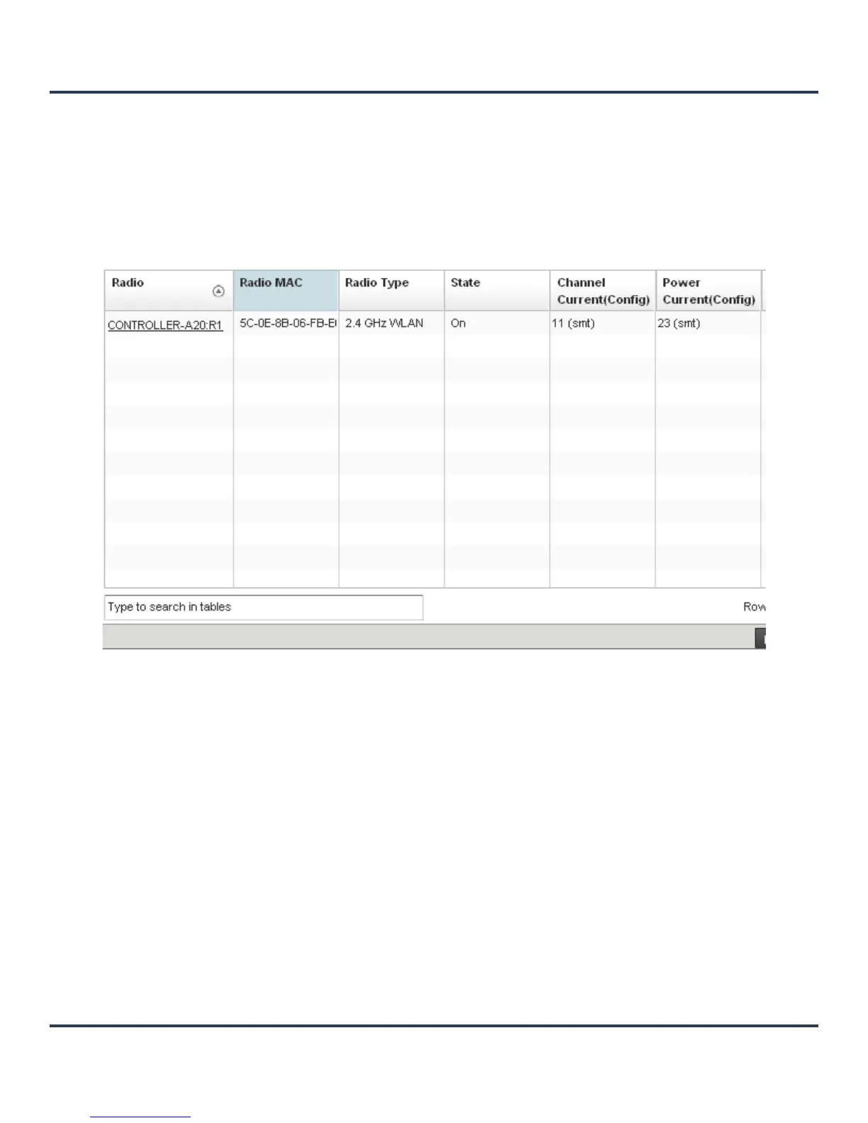 Radio MAC Displays the MAC address and numerical value assigned to the radio as its