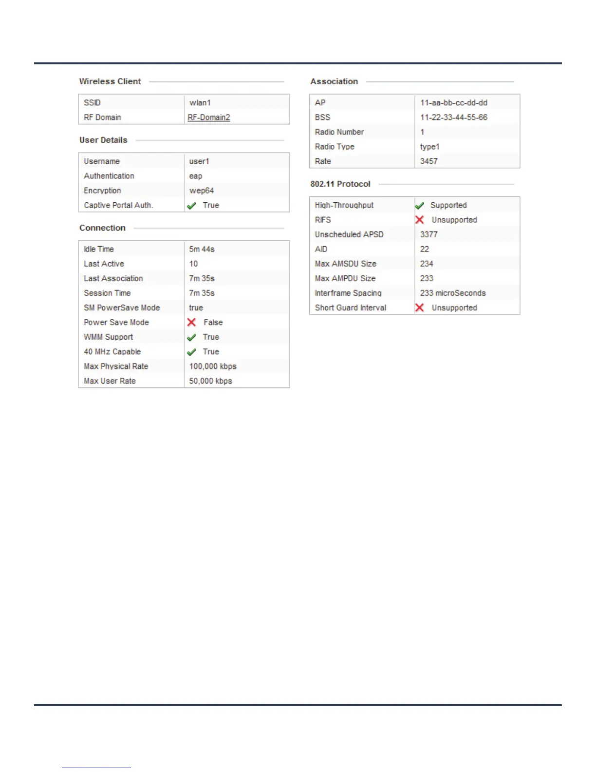 RF Domain Displays the RF domain name the wireless client belongs to.