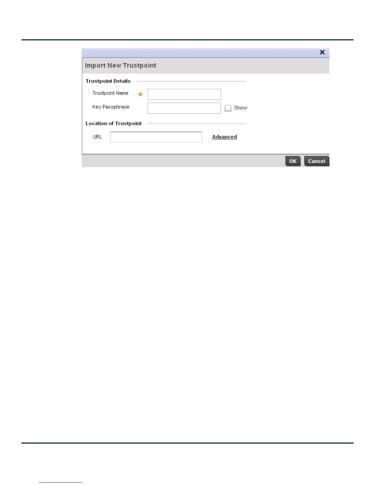 4. Define the following configuration parameters required for the Import of the trustpoint.