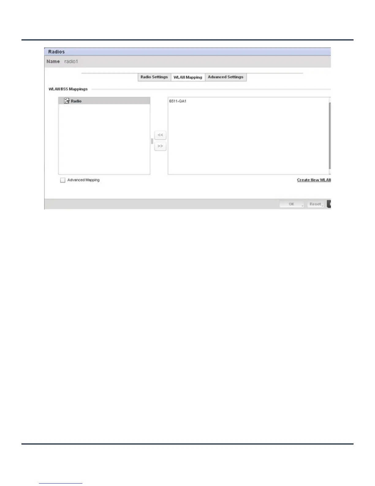 13.Select OK to save the changes and overrides to the WLAN Mapping. Select Reset to revert to the last