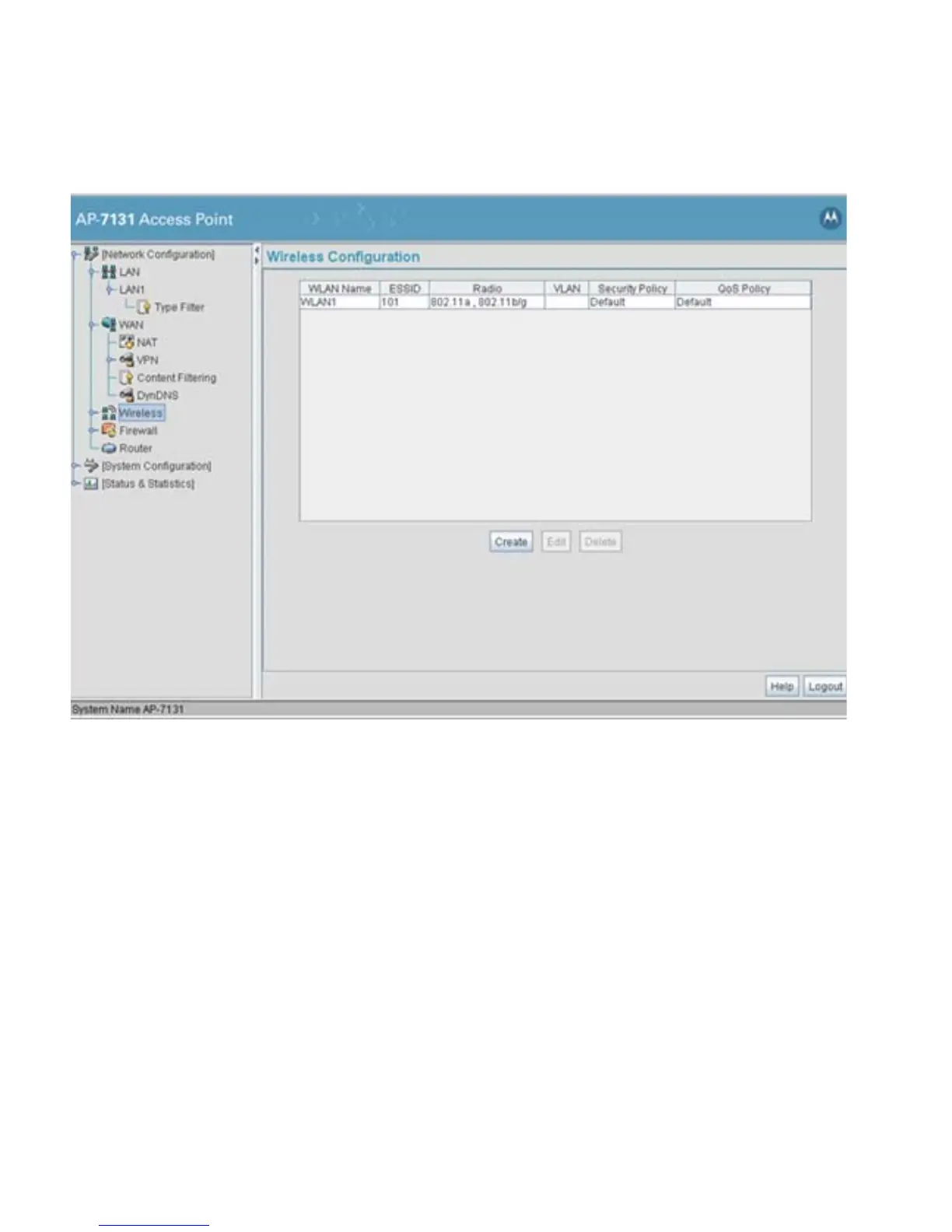 If a WLAN is defined, that WLAN displays within the Wireless Configuration screen. When