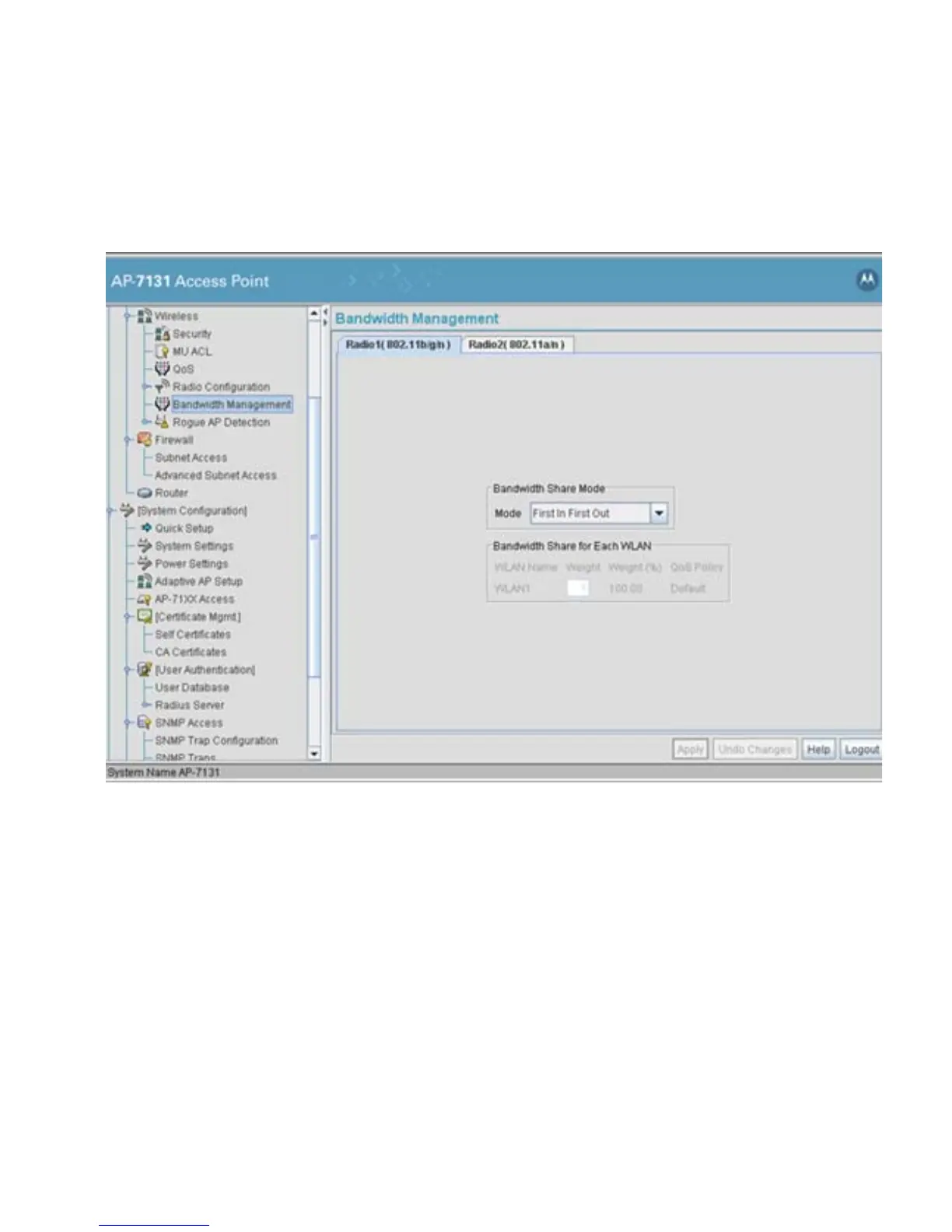 1. Select Network Configuration -> Wireless -> Bandwidth Management from the