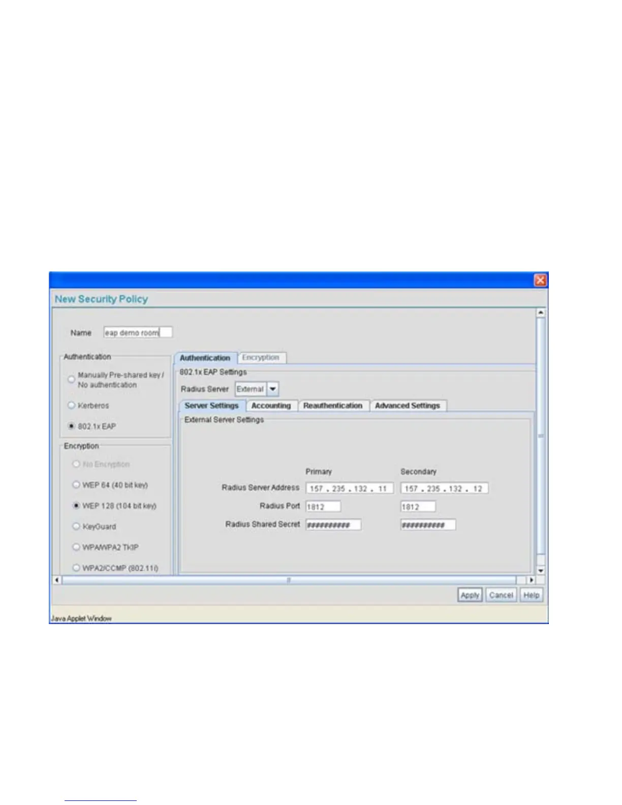 The 802.1x EAP Settings field displays within the New Security Policy screen.