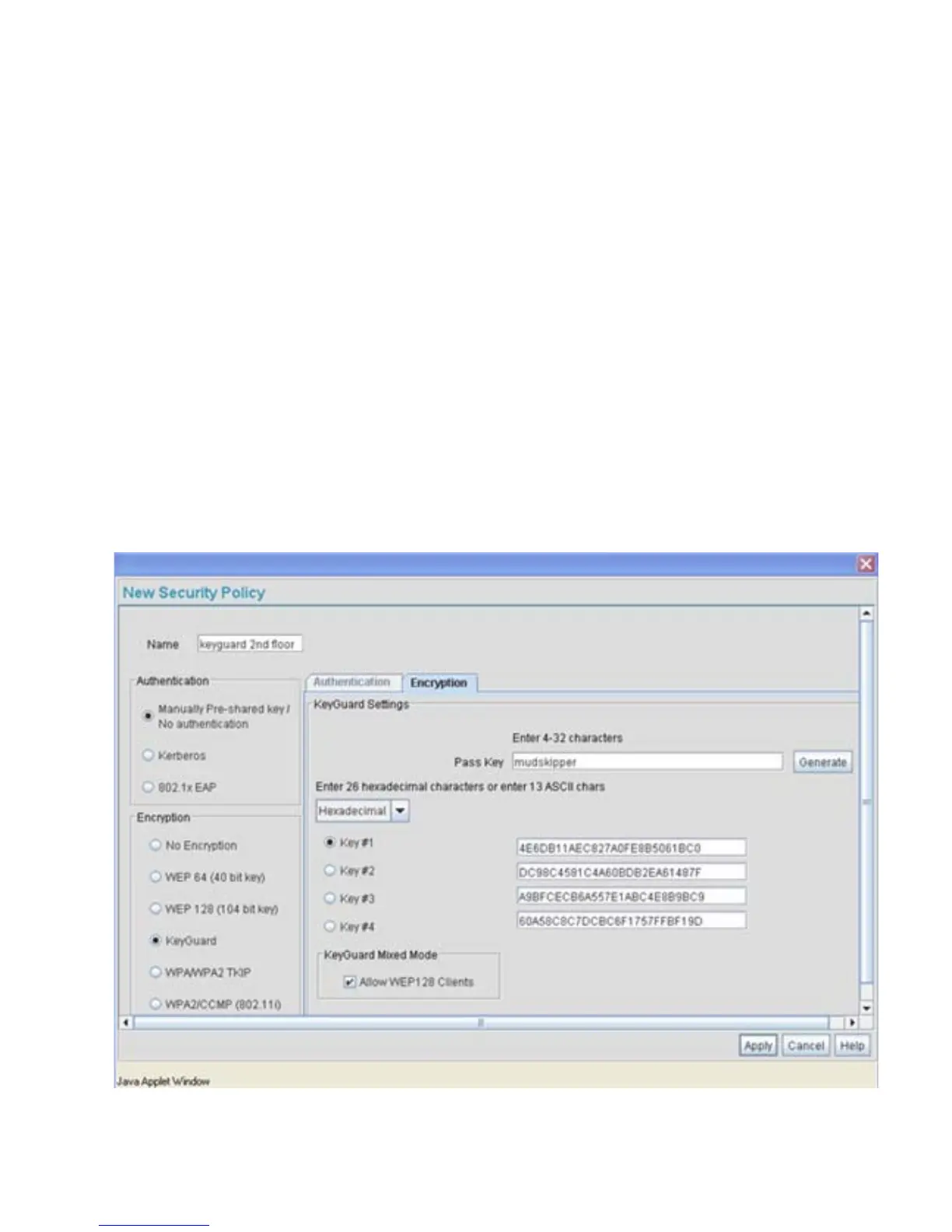 by clicking the Edit button. To configure a new security policy supporting KeyGuard,