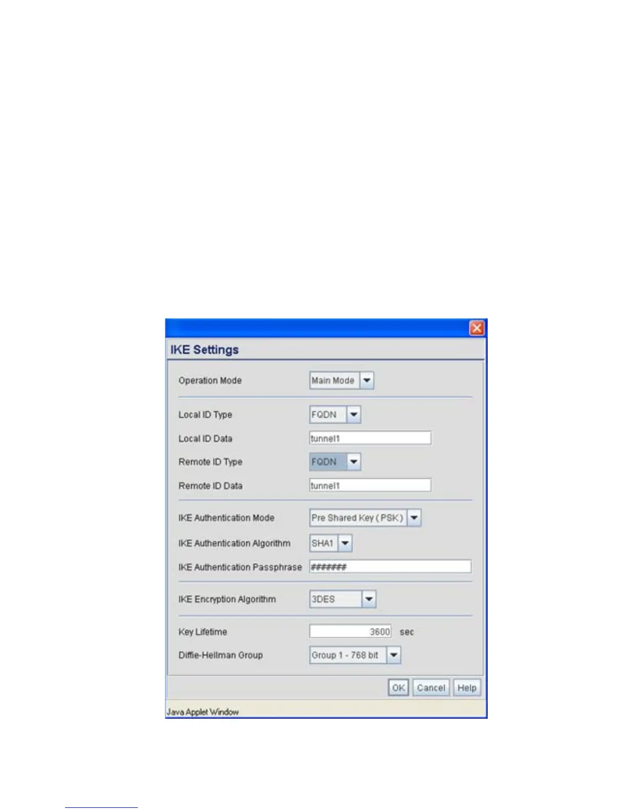 2. Refer to the VPN Tunnel Config field, select the Auto (IKE) Key Exchange radio button