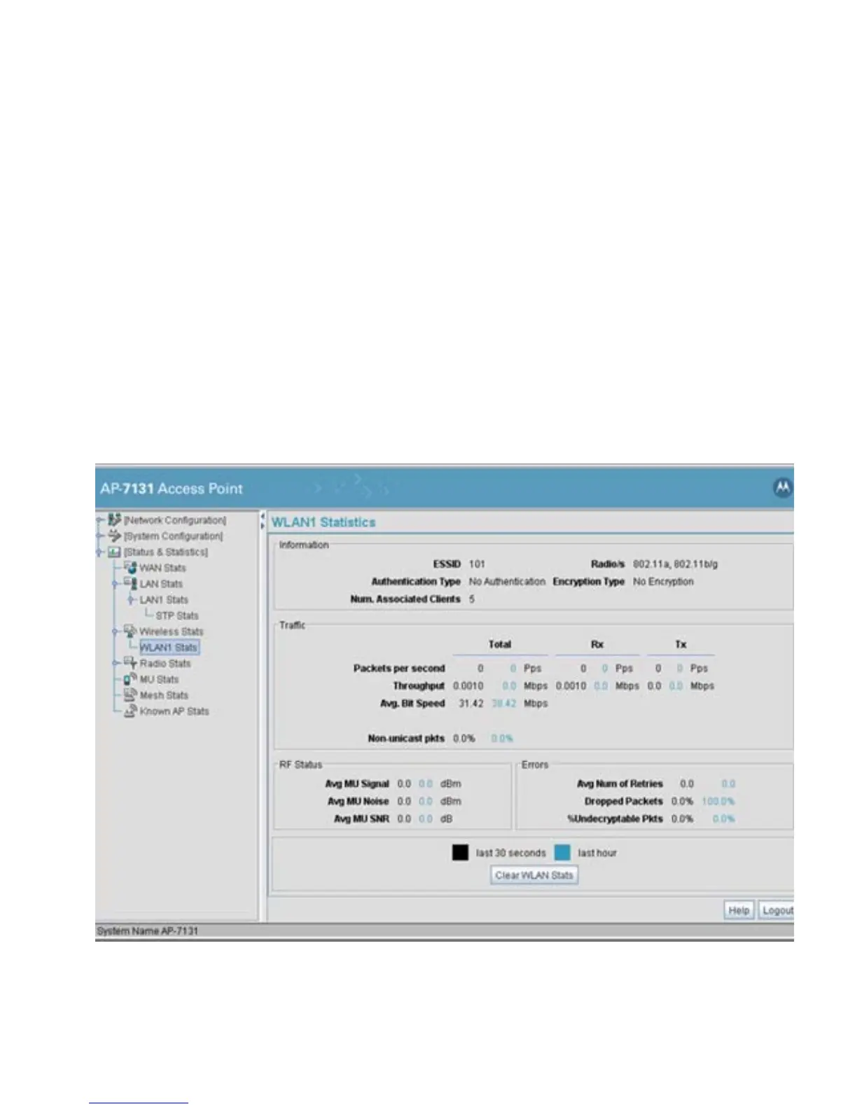 Use the WLAN Stats screen to view detailed statistics for individual WLANs.The WLAN Stats