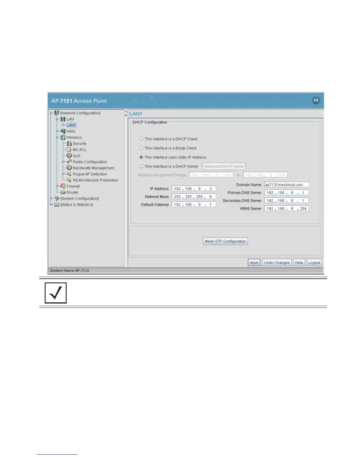 NOTE Enable the LAN1 Interface of AP#1 as a DHCP Server if you intend to