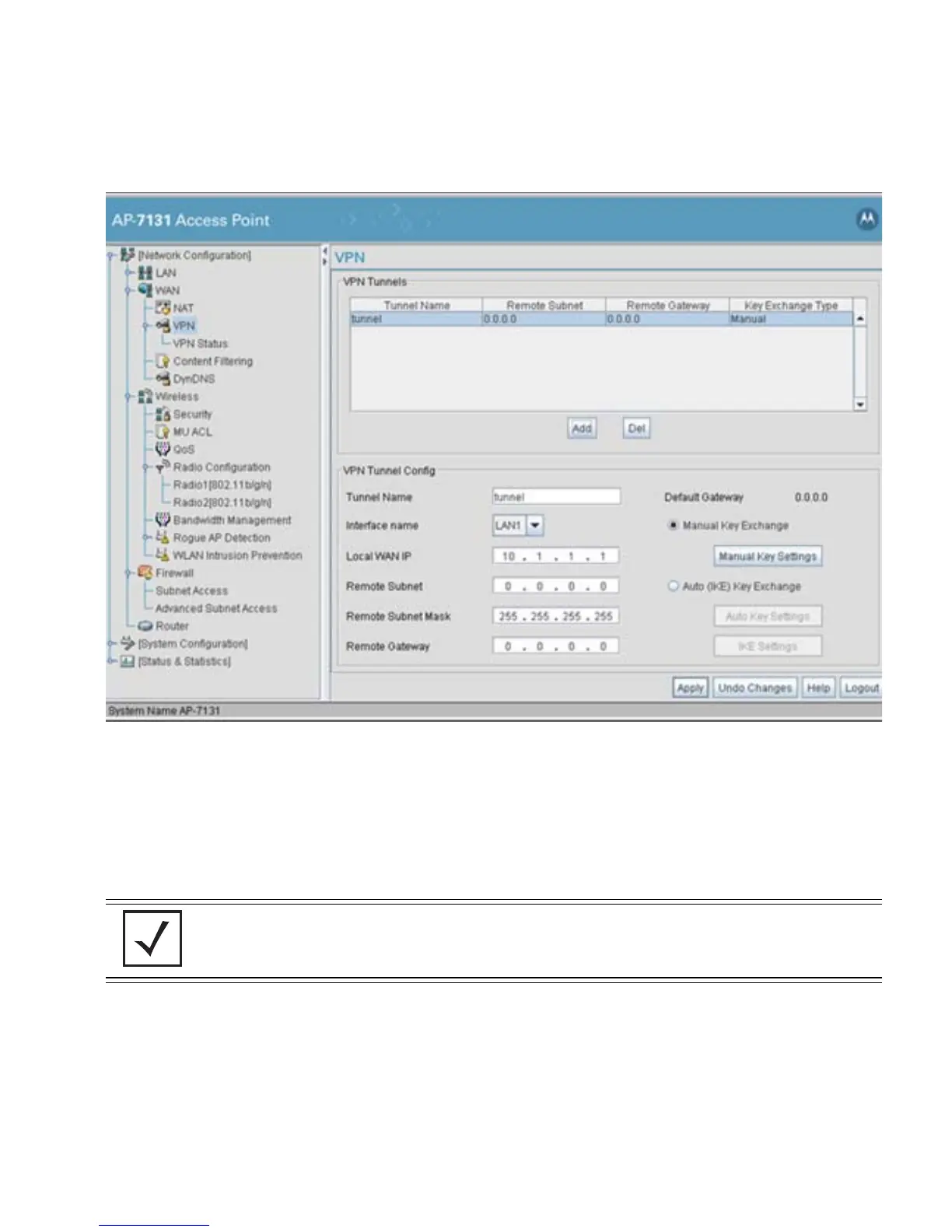 NOTE For this example, Auto IKE Key Exchange is used. Any key exchange can