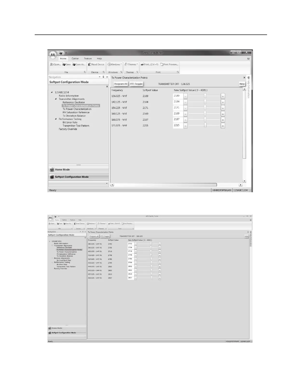 Figure 6-9. Transmit Power Characterization Points Alignment Screen (VHF)