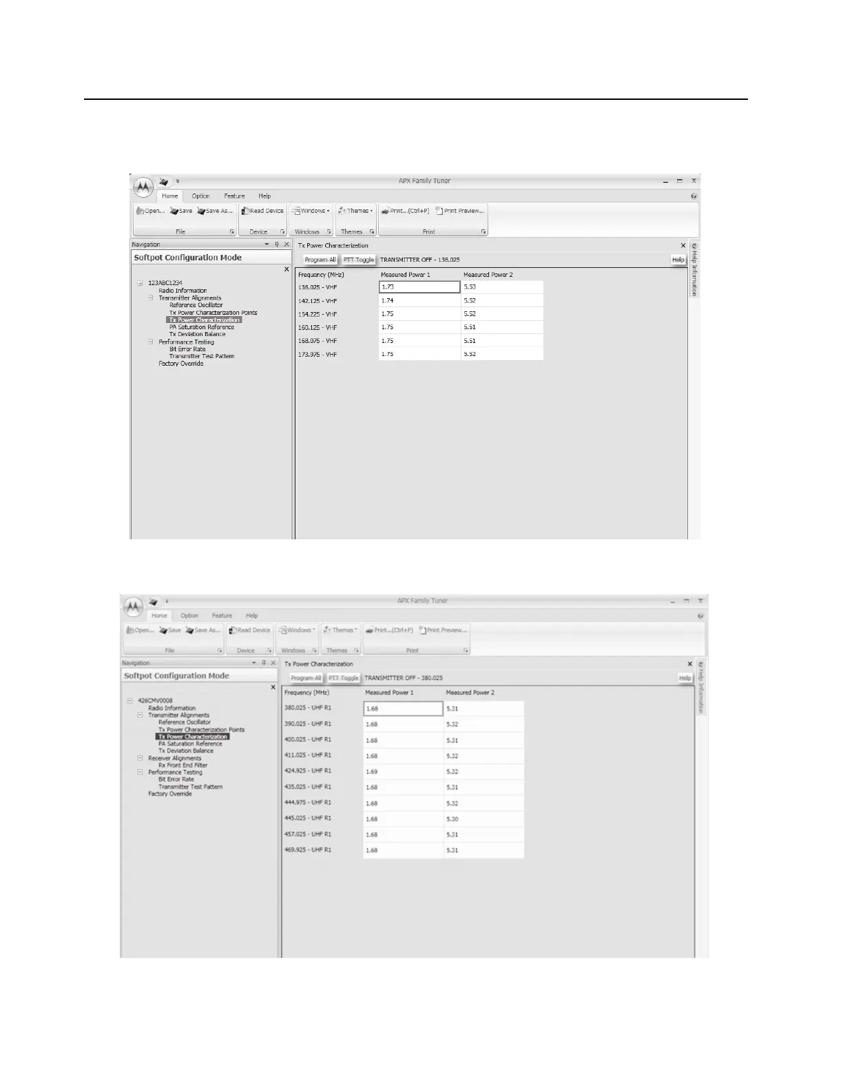 Figure 6-13. Transmit Power Characterization Alignment Screen (VHF)