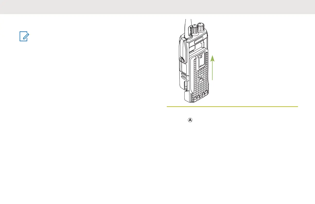 2 To remove the battery, turn the radio off. Lift the