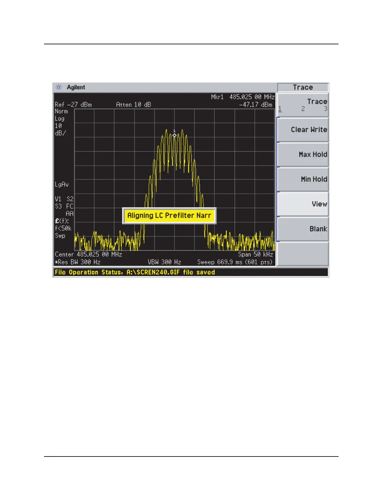 Typical RX signal with 1 kHz modulation. Display shows modulation components of carrier.