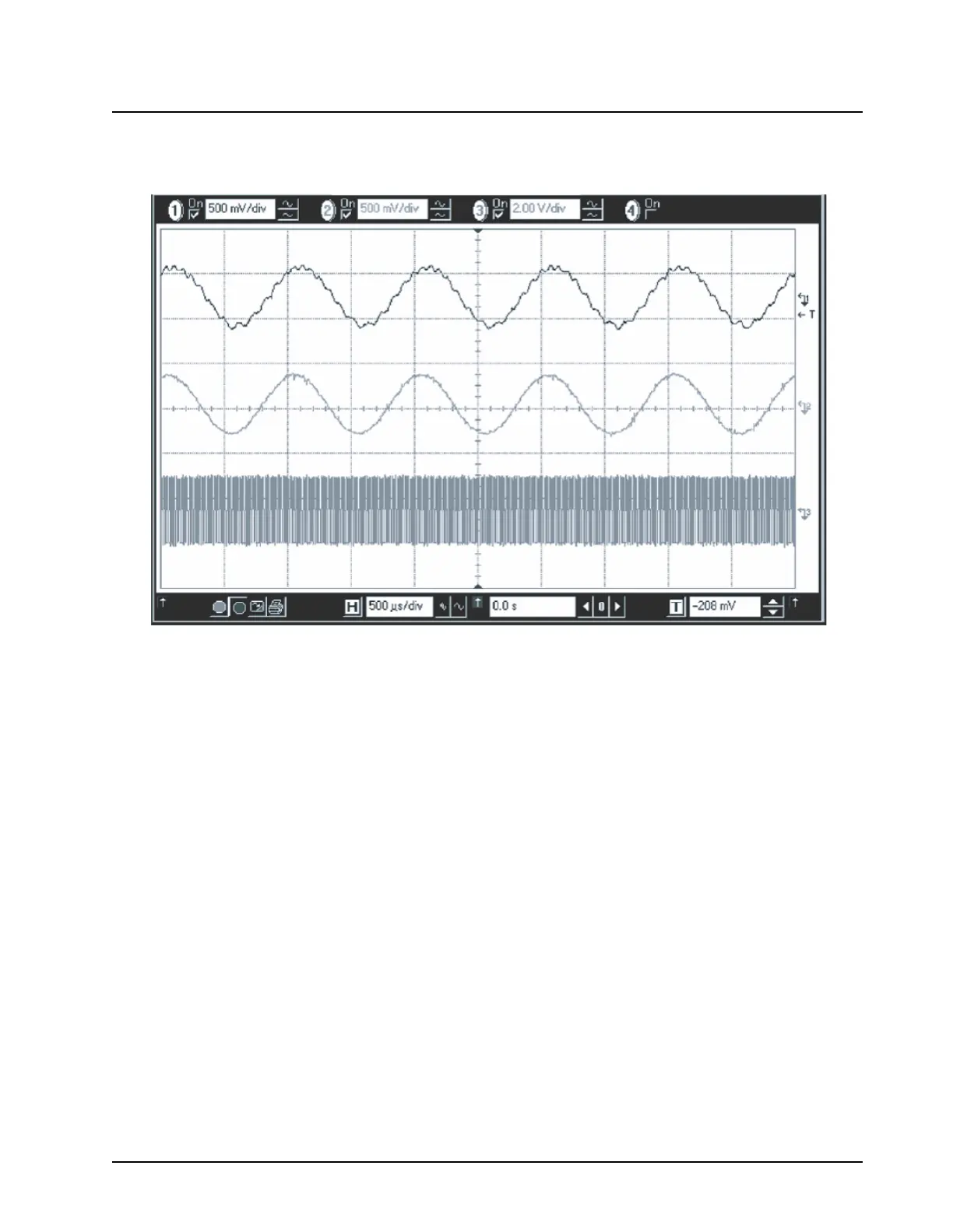 Trace 1: TP23 Mod In (640 mVp-p 1 kHz tone 1.5 Vdc)