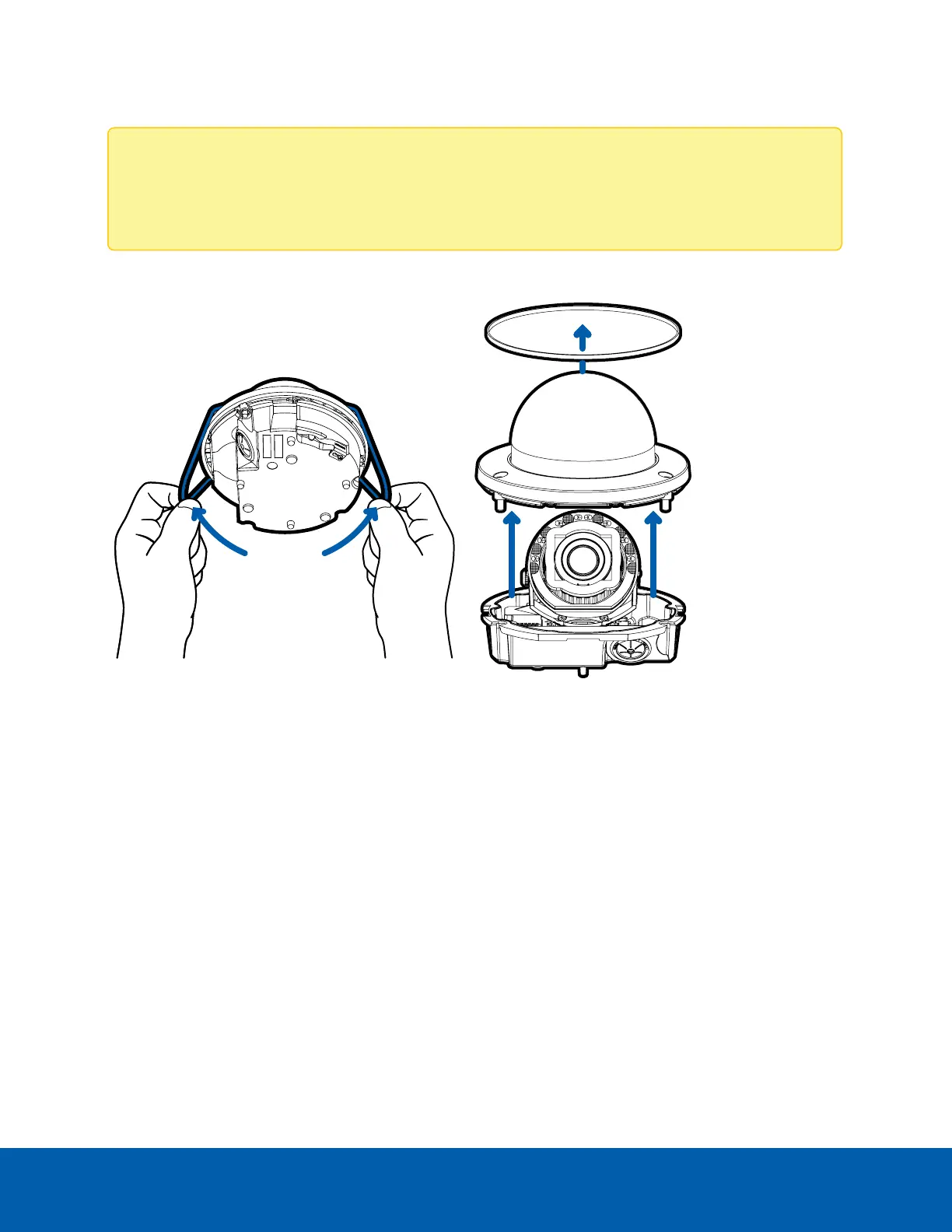 l Remove the dome cover by releasing the elastic strap holding the dome cover to the camera base.