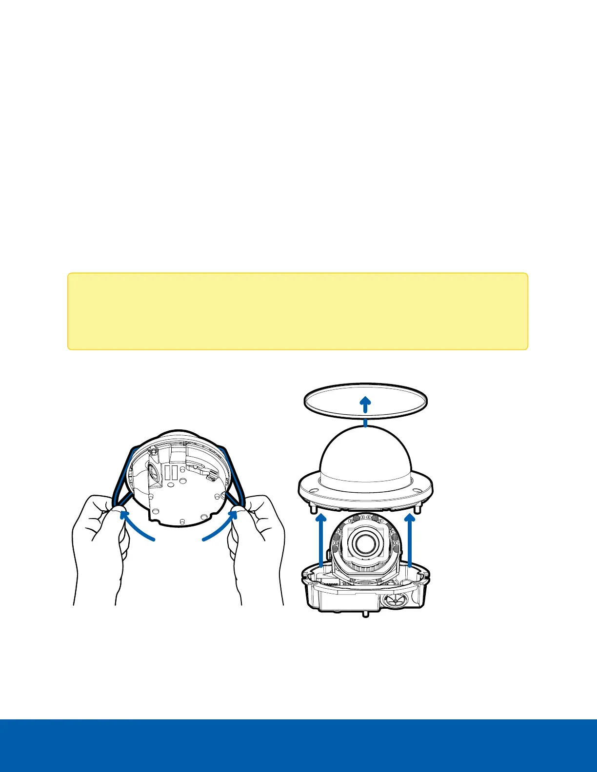l Remove the dome cover by releasing the elastic strap holding the dome cover to the camera base.