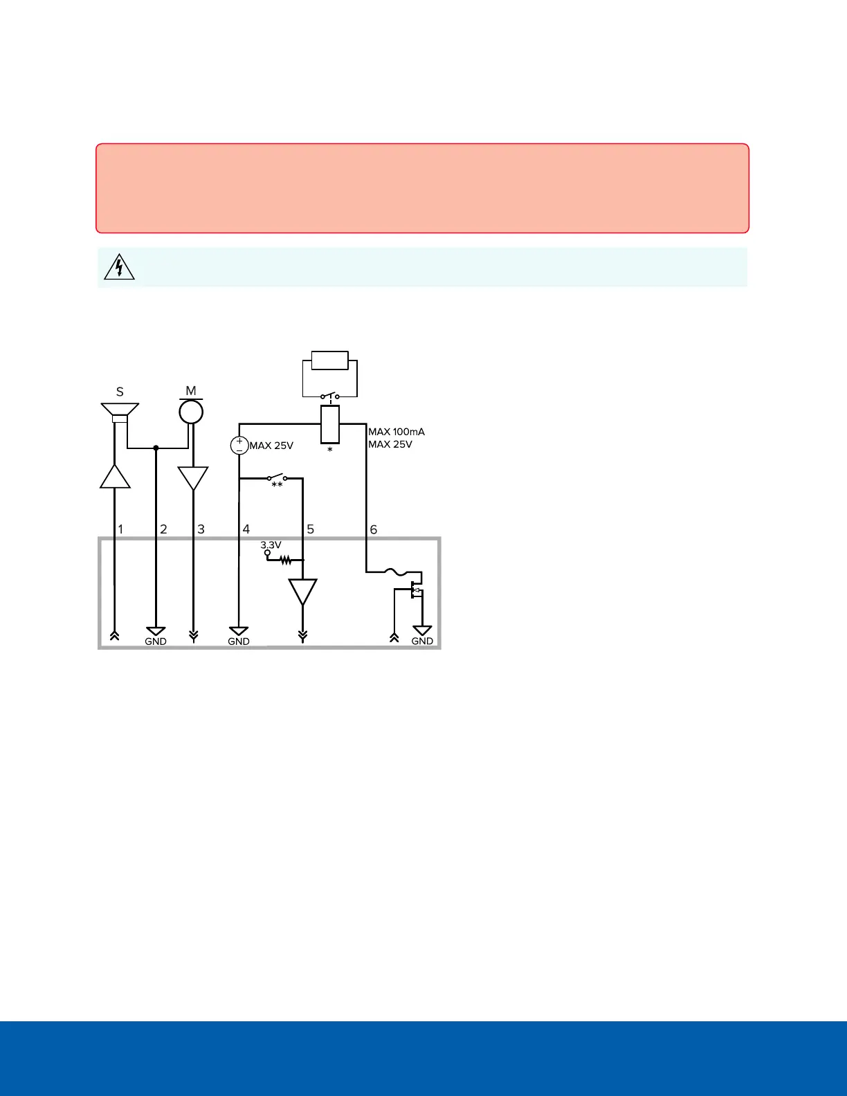 auxiliary power to the audio or I/O terminal block or the camera will be damaged.
