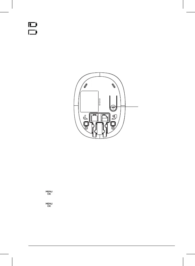 Press and hold to enter registration mode when registering handsets.