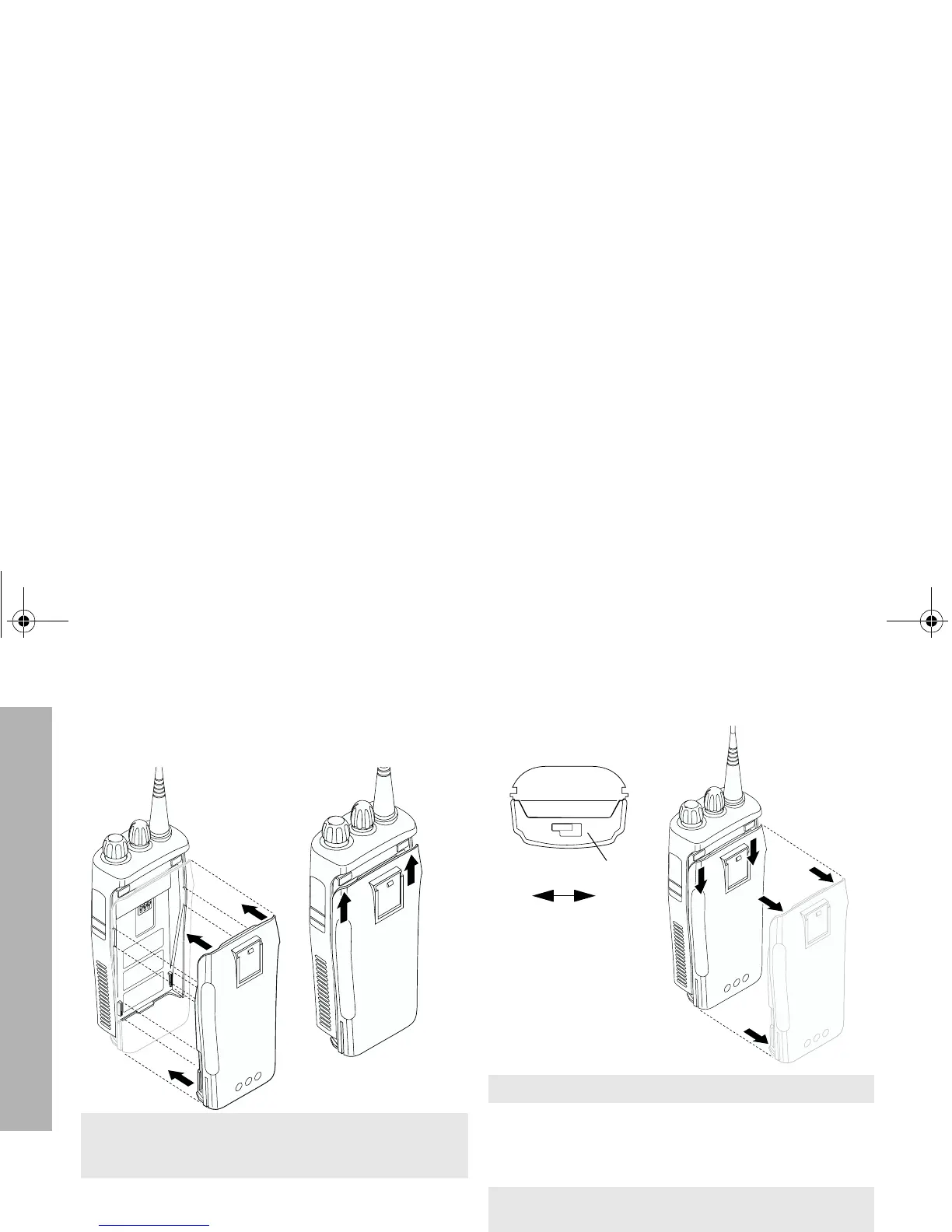 2 Drücken Sie den Akku fest an das Funkgerät