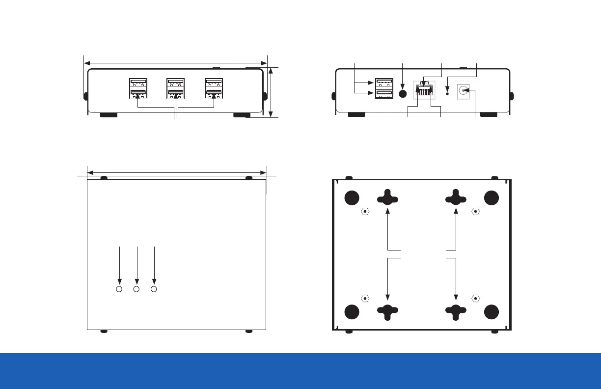 Motorola DOCKCONTROLLER DC-200 - DC-200 Physical Overview; Front and Back Views; Top and Bottom Views