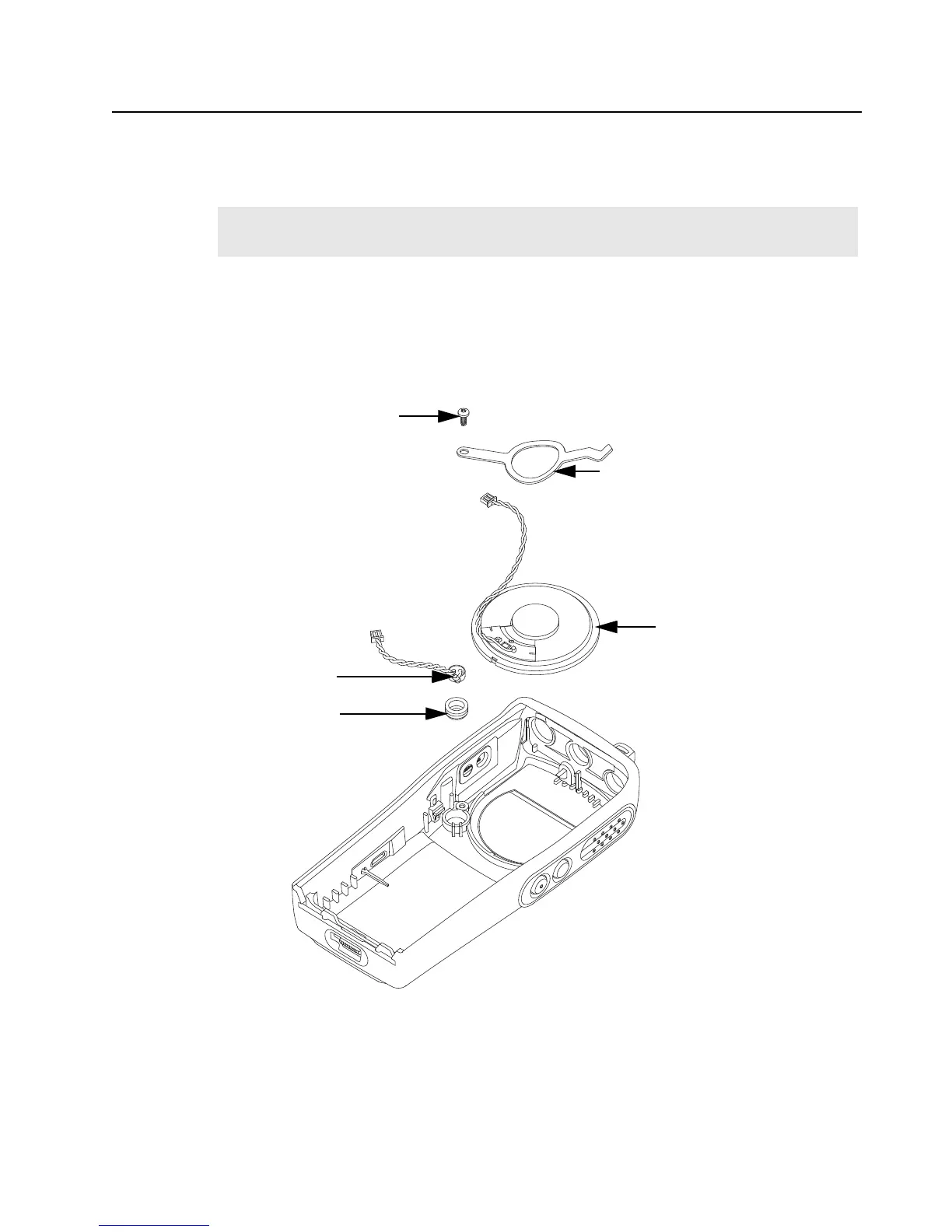 1. Remove the screw from the speaker retainer, Figure 5-13, using a TORX screwdriver with a