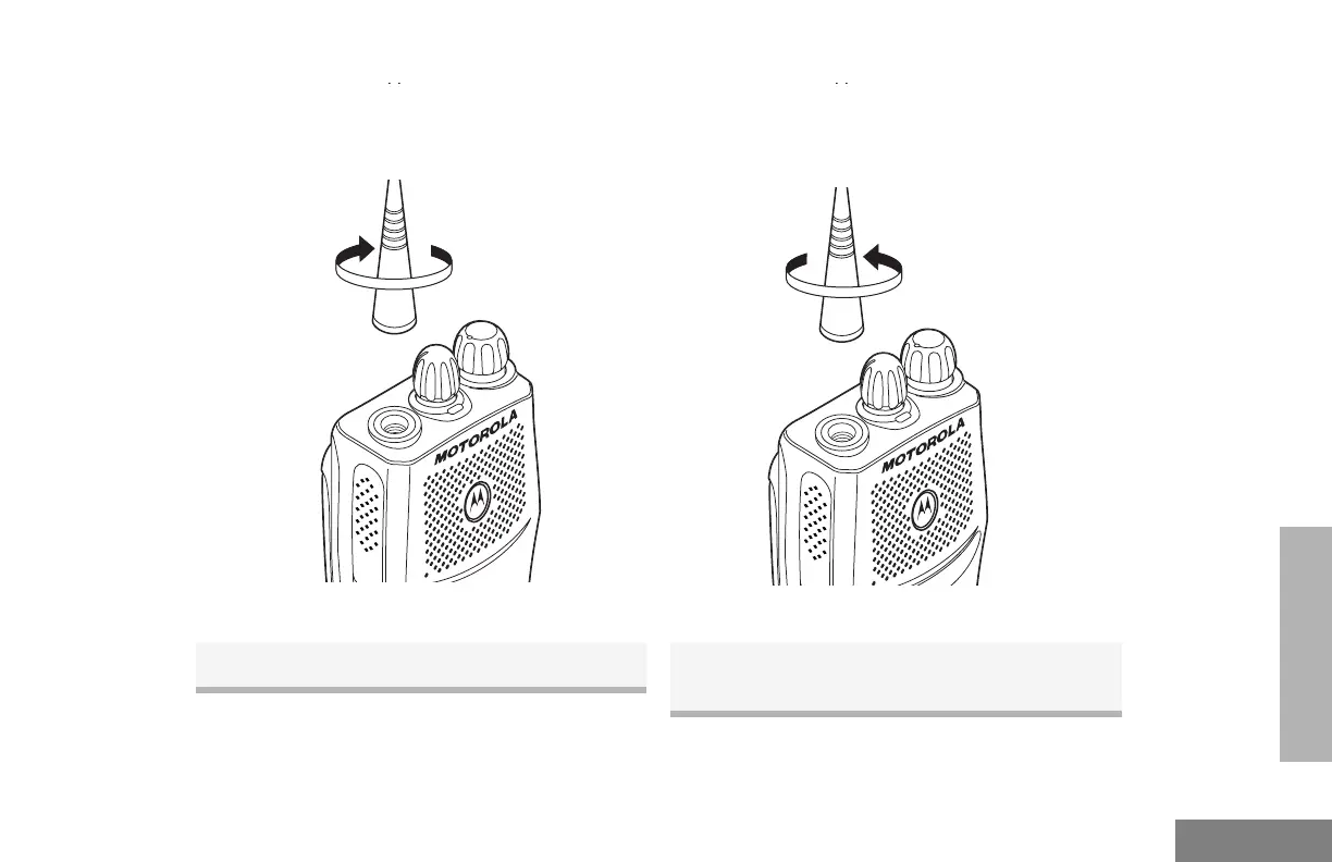 Turn the antenna clockwise to attach it. Turn the antenna counter-clockwise to remove