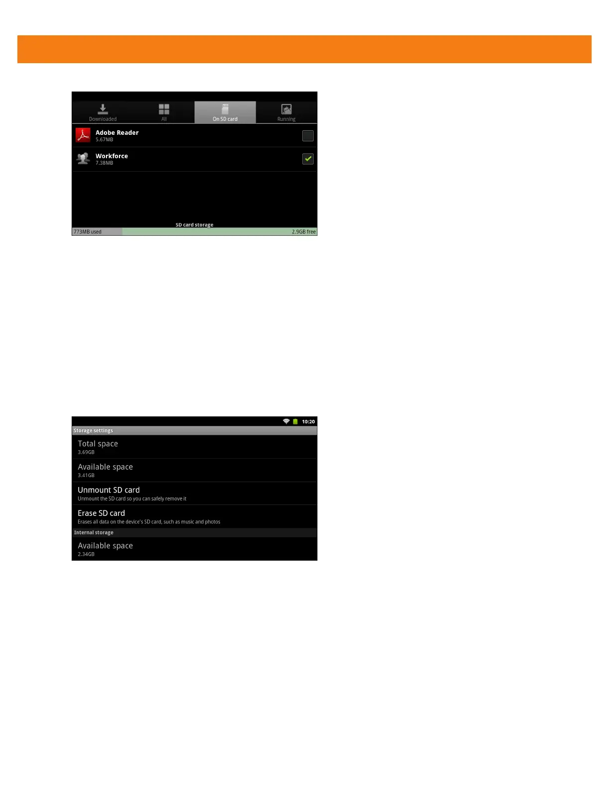 Storage settings - Internal Storage