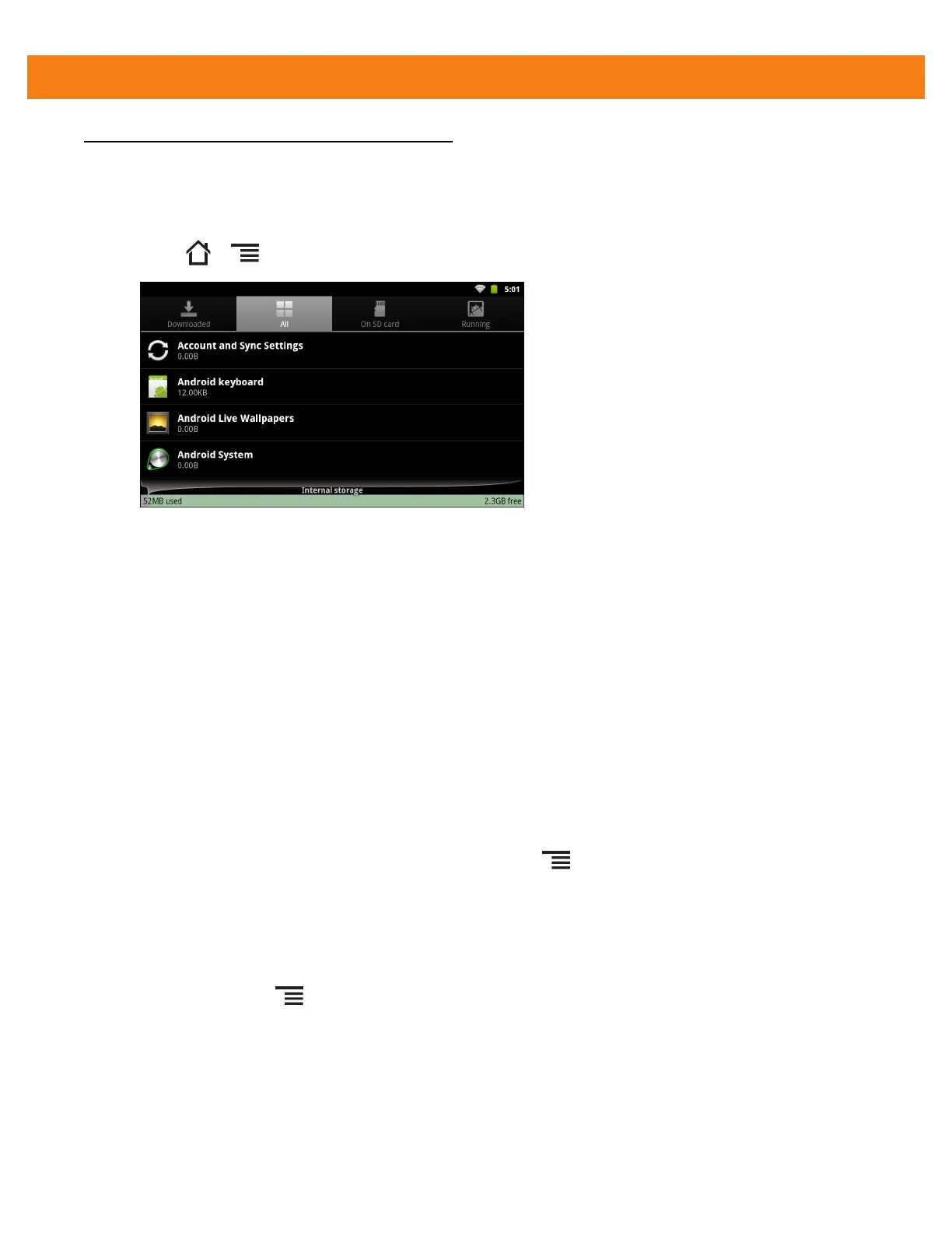 managing the application’s data, forcing the application to stop, and uninstalling the application. It also lists