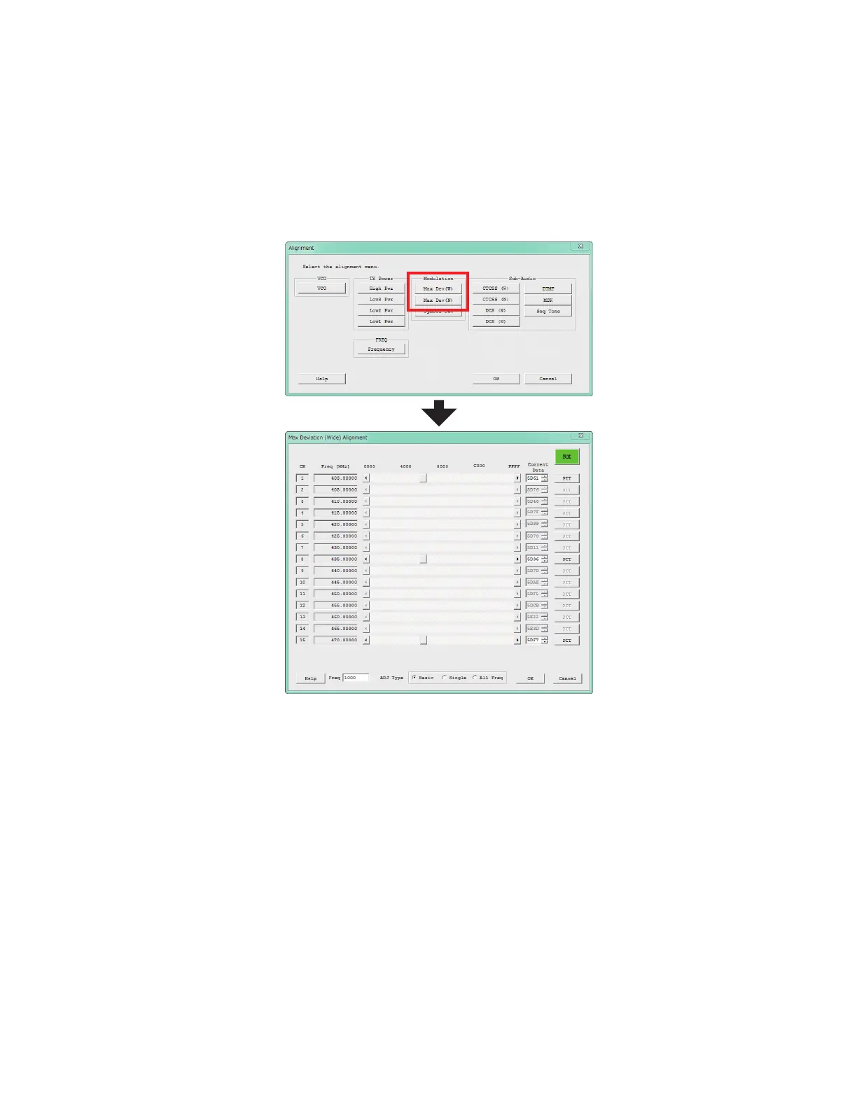3 Set the value to get desired deviation (Wide: 4.2 kHz,Narrow: 2.1 kHz) on the deviation meter