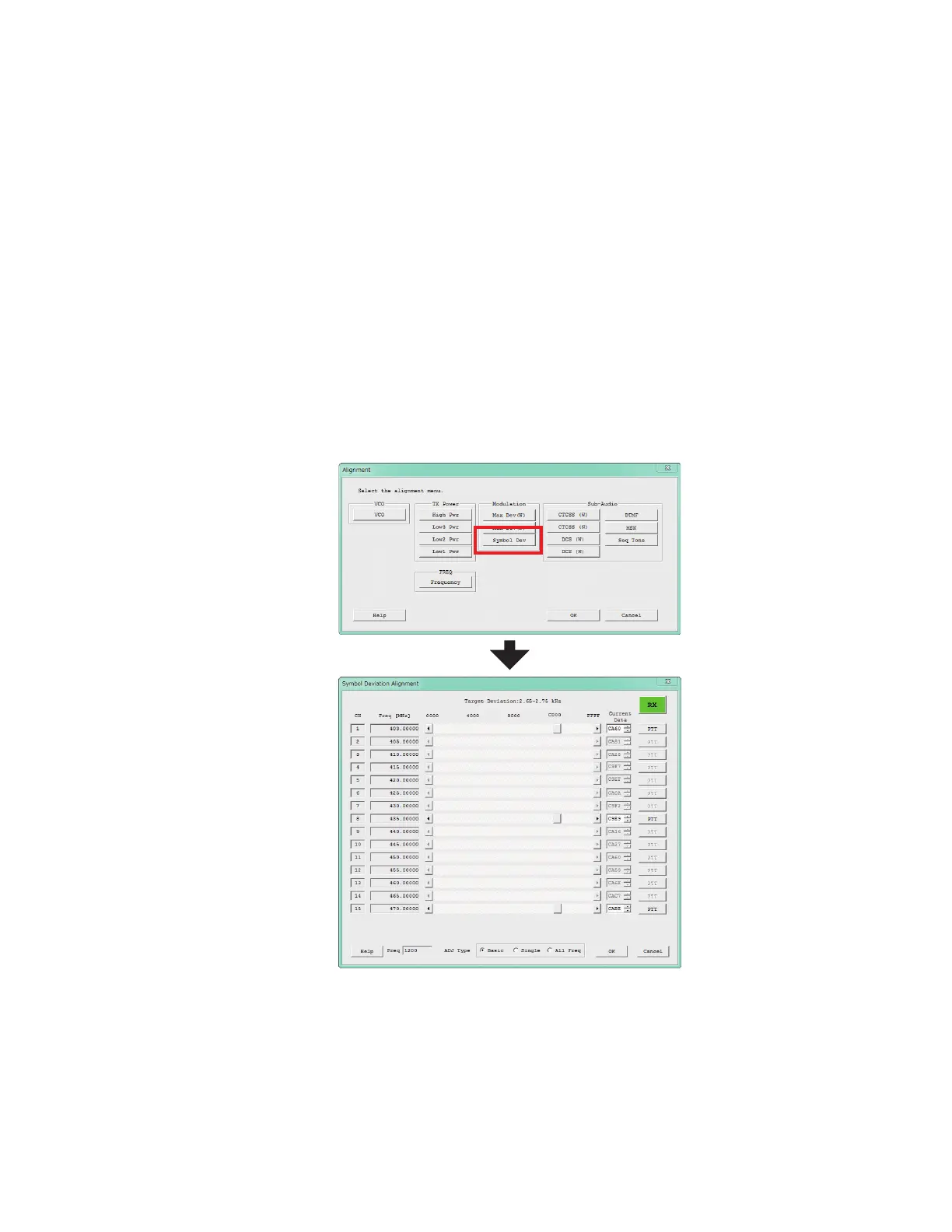 1 Press the “Symbol Dev” button to open the “Symbol Deviation Alignment” window.