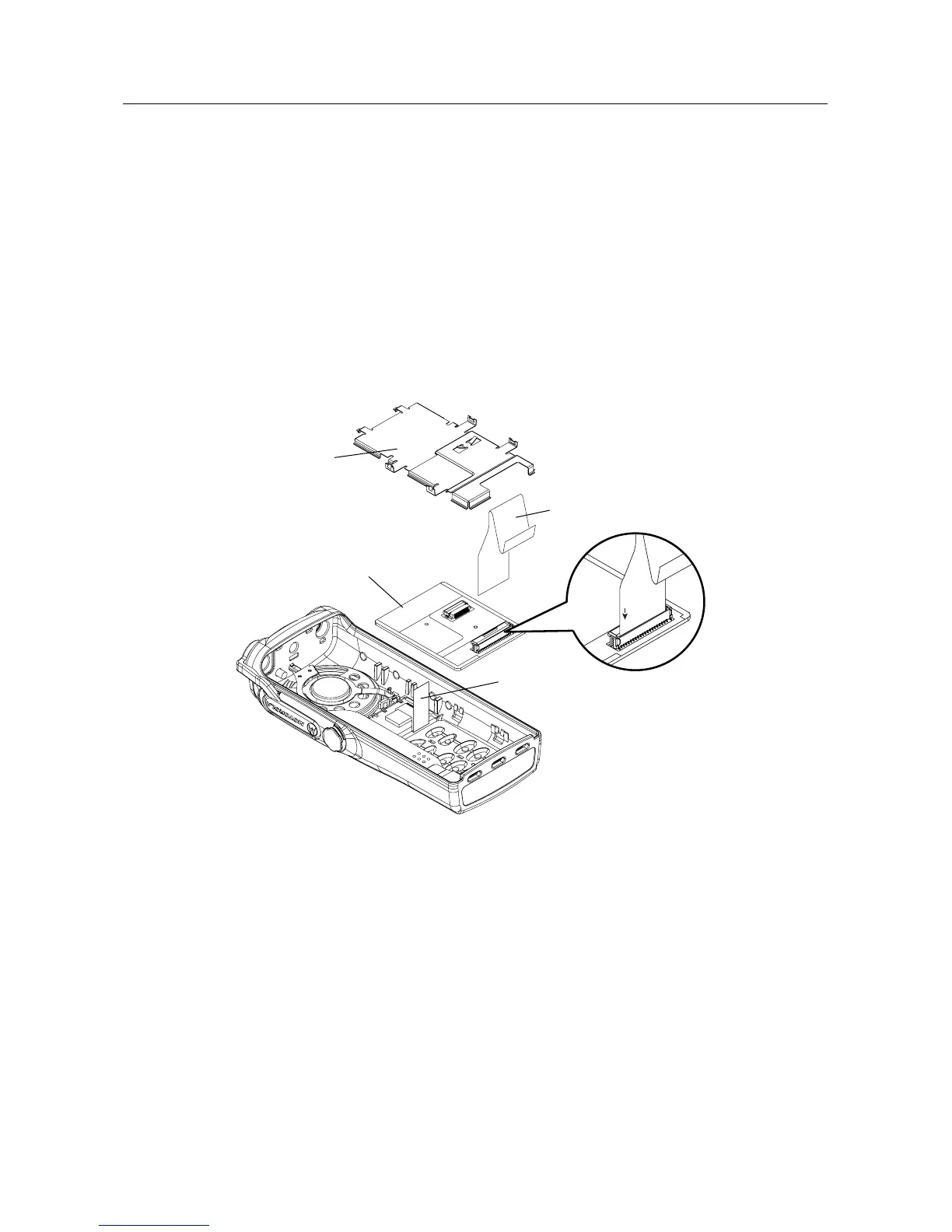 8. Insert the jumper flex circuit into the connector on the option board. Notice the orientation of