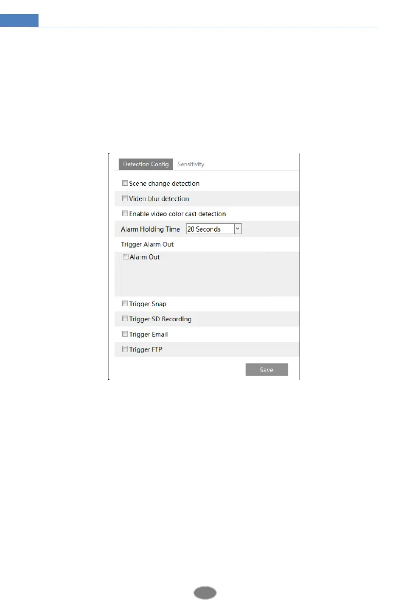 Enable Video Color Cast Detection: Alarms will be triggered if the video becomes