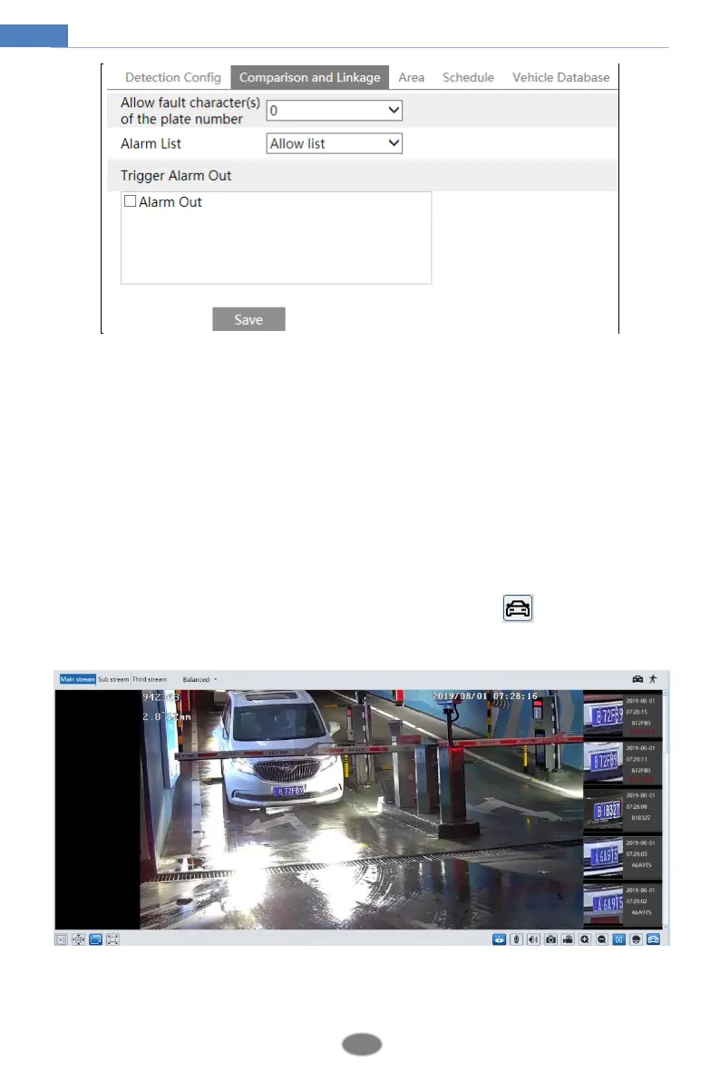 Alarm list: Select a list as the comparison list. Allow list, block list or unknown vehicle can be