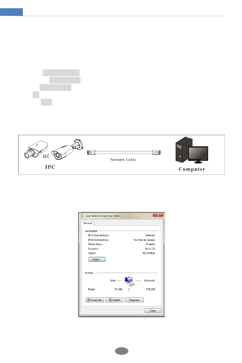 the default settings of the IP camera. Open the network and share center. Click “Local Area