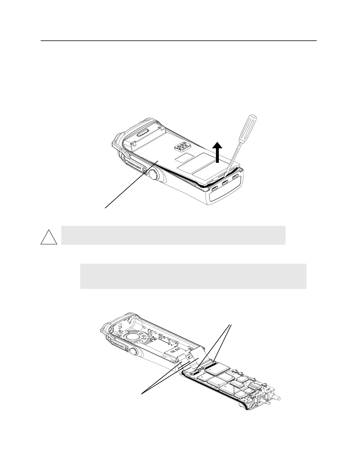 thin remaining wall and the chassis at the bottom of the radio. Do not mar the O-ring sealing