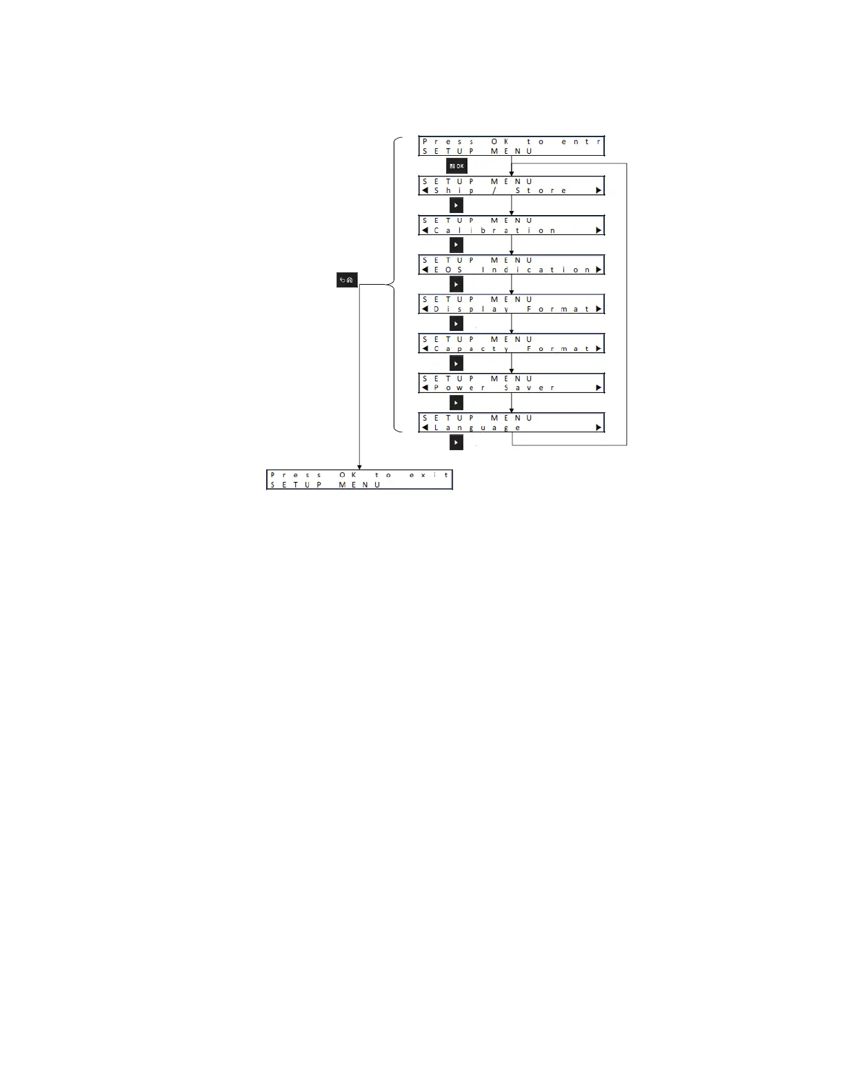 ● Tryck på högerpilen för att bläddra igenom alternativen enligt bilden.