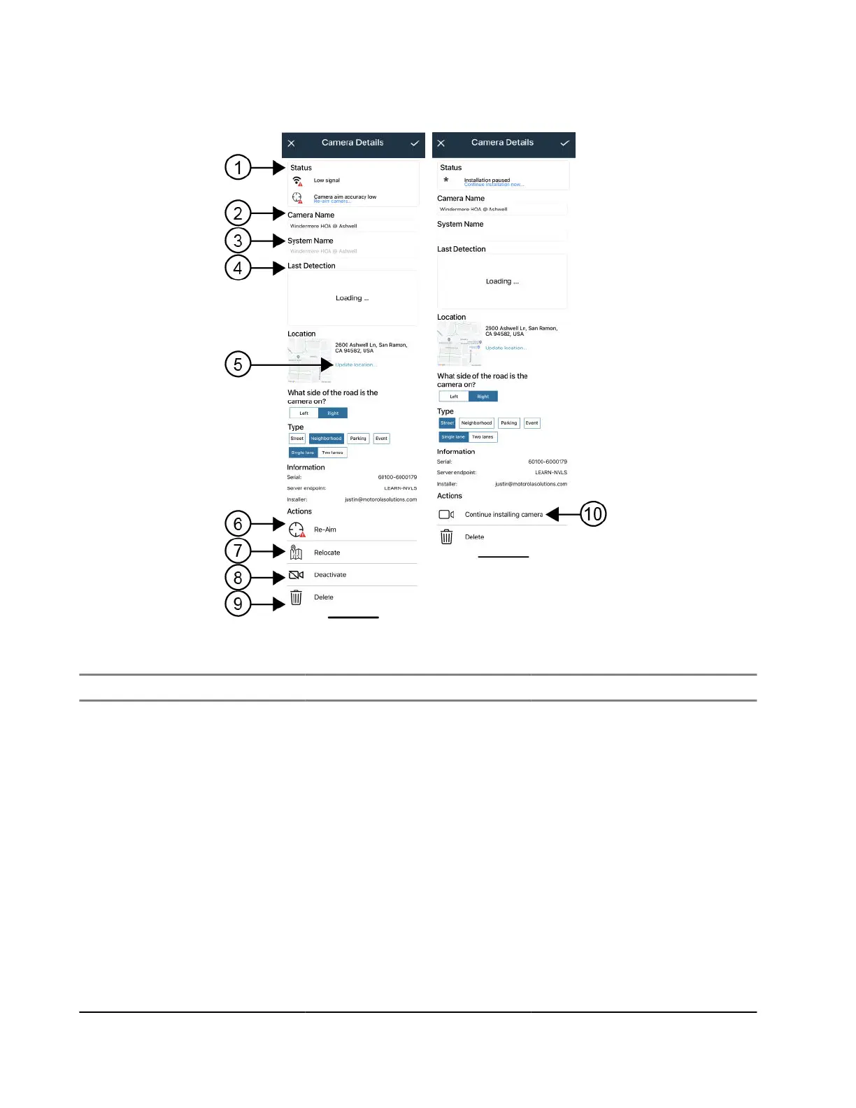 Mesa 15: Detalles de la cámara