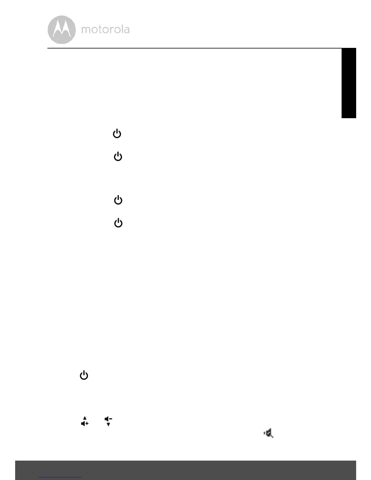 • Press and hold to power on the baby unit. The Power/Link indicator turns