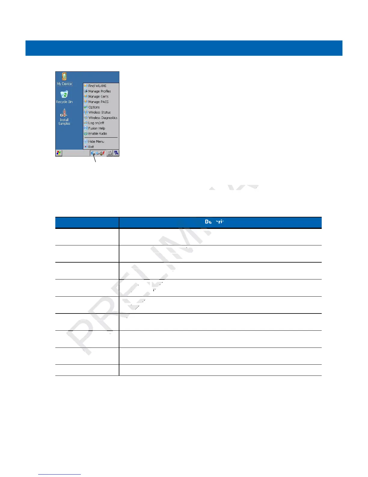 Wireless Status Invokes the Wireless Status application which allows you to view the status of the