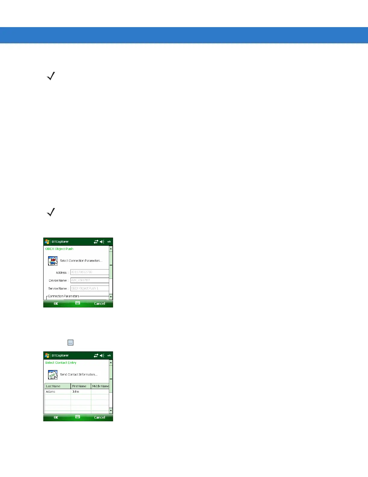 7. Tap Connect. The OBEX Object Push window appears.