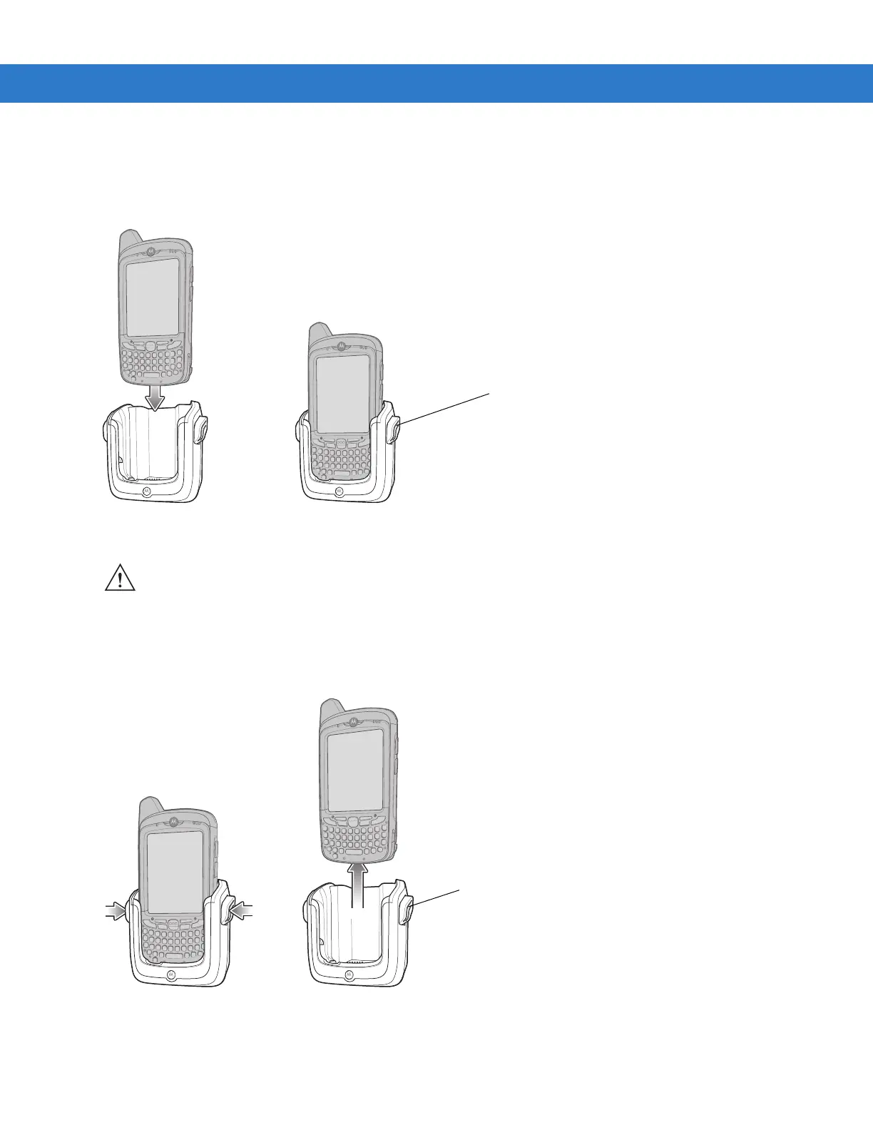 CAUTION Ensure the MC65 is fully inserted in the cradle. Lack of proper insertion may result in property damage or