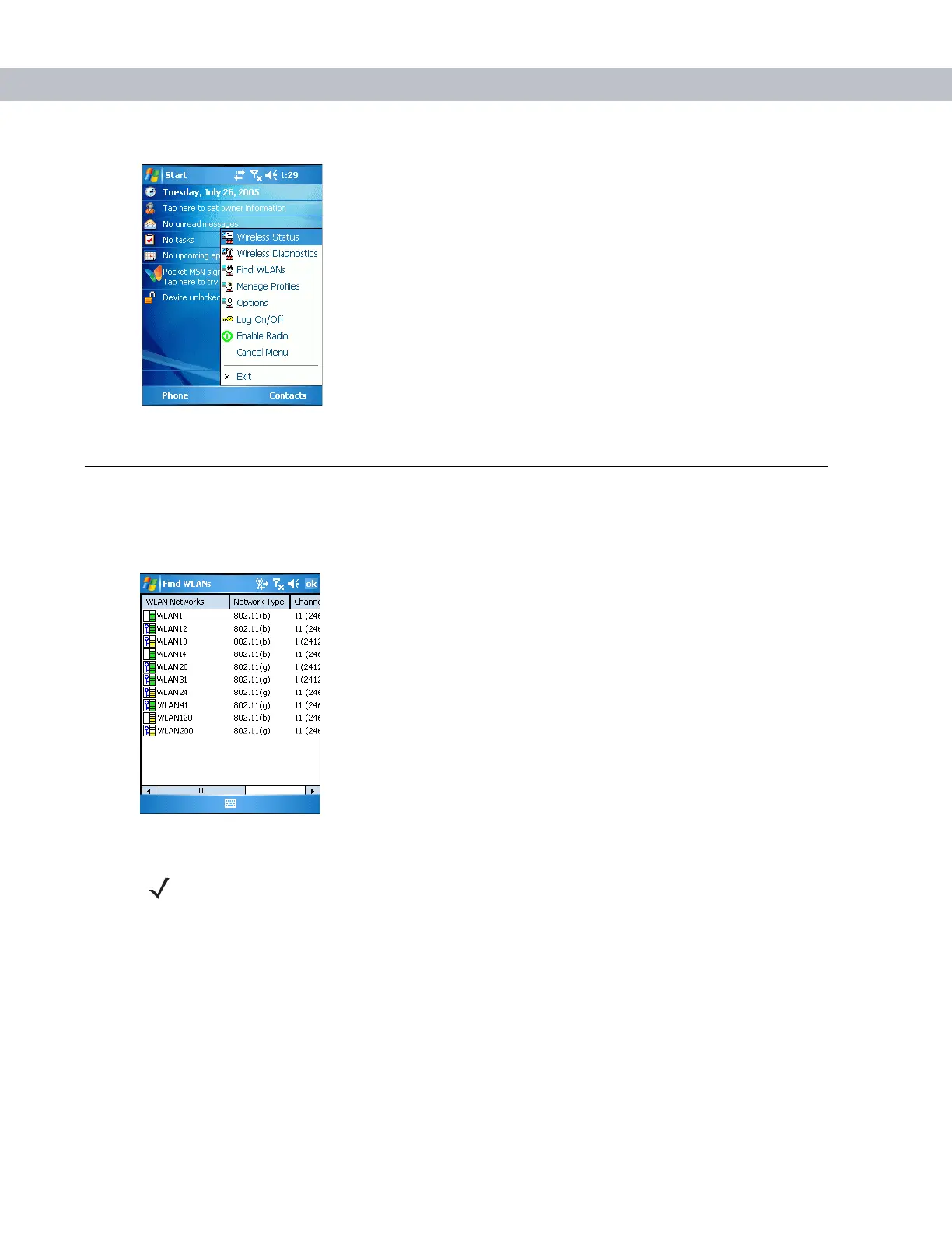 Find WLANs application, tap the Signal Strength icon > Find WLANs. The Find WLANs window displays.