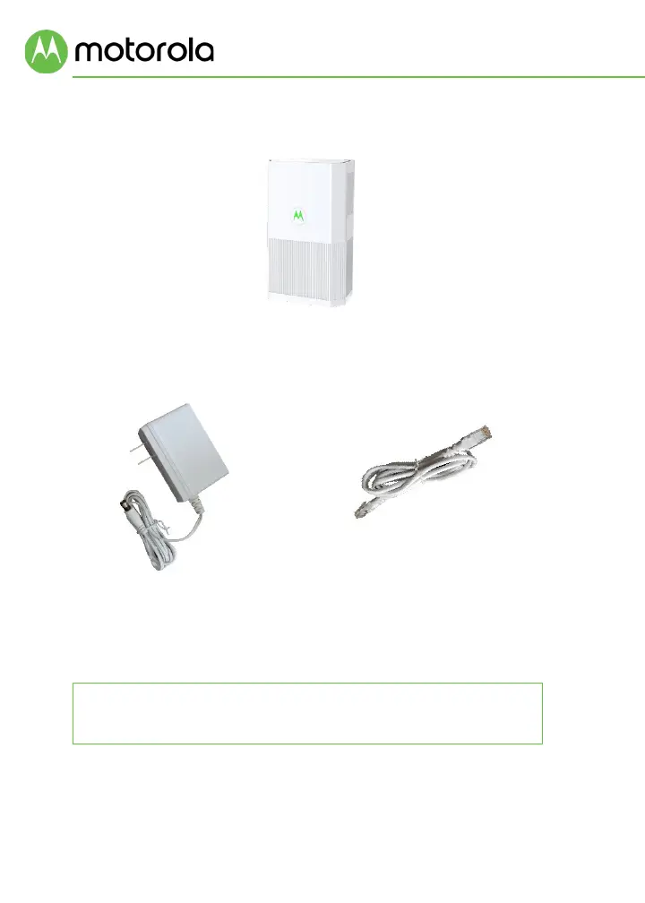 Motorola MH7021 - Packaged Contents; Motorola Satellite Unit; Power Adapter and Ethernet Cable