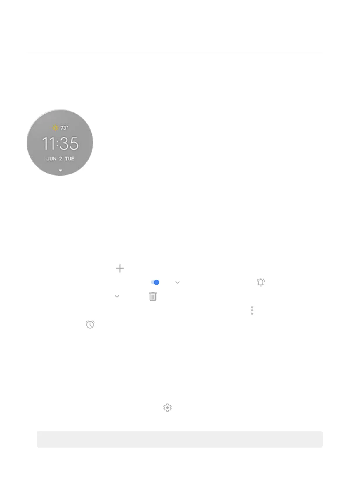 To use an existing alarm, switch it on . Tap to view or edit its ringtone .