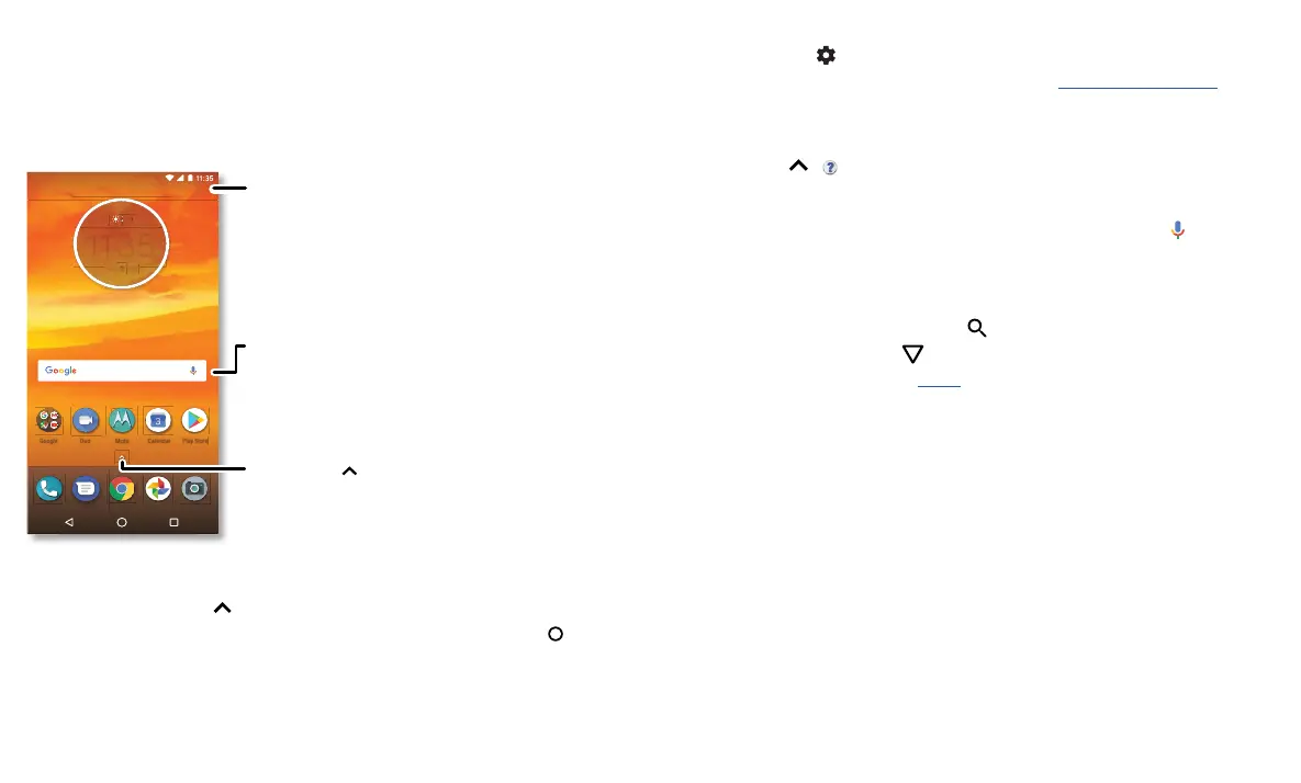 » Customisation: to personalise your Home screen, see Customise your phone.