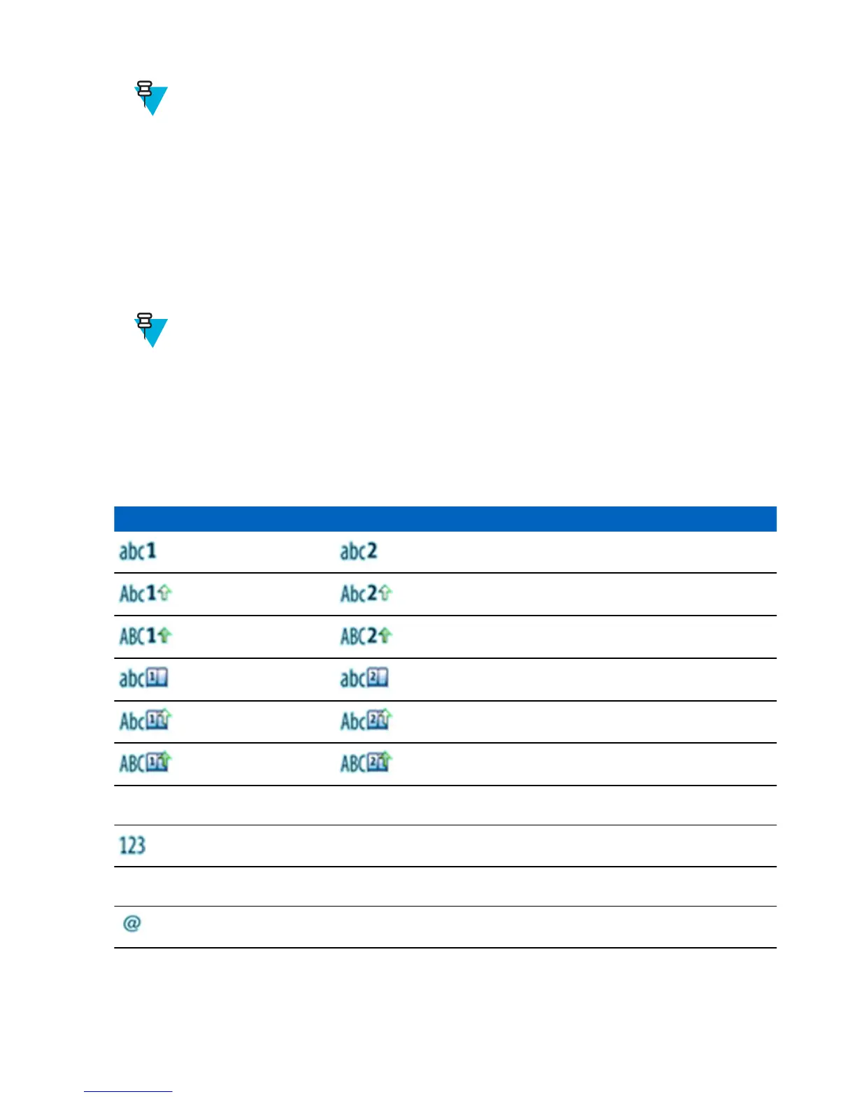 在文字輸入畫面中,圖示會指出目前使用的文字輸入模式和輸入法。 文字輸入圖示上顯示的字元計數器指出