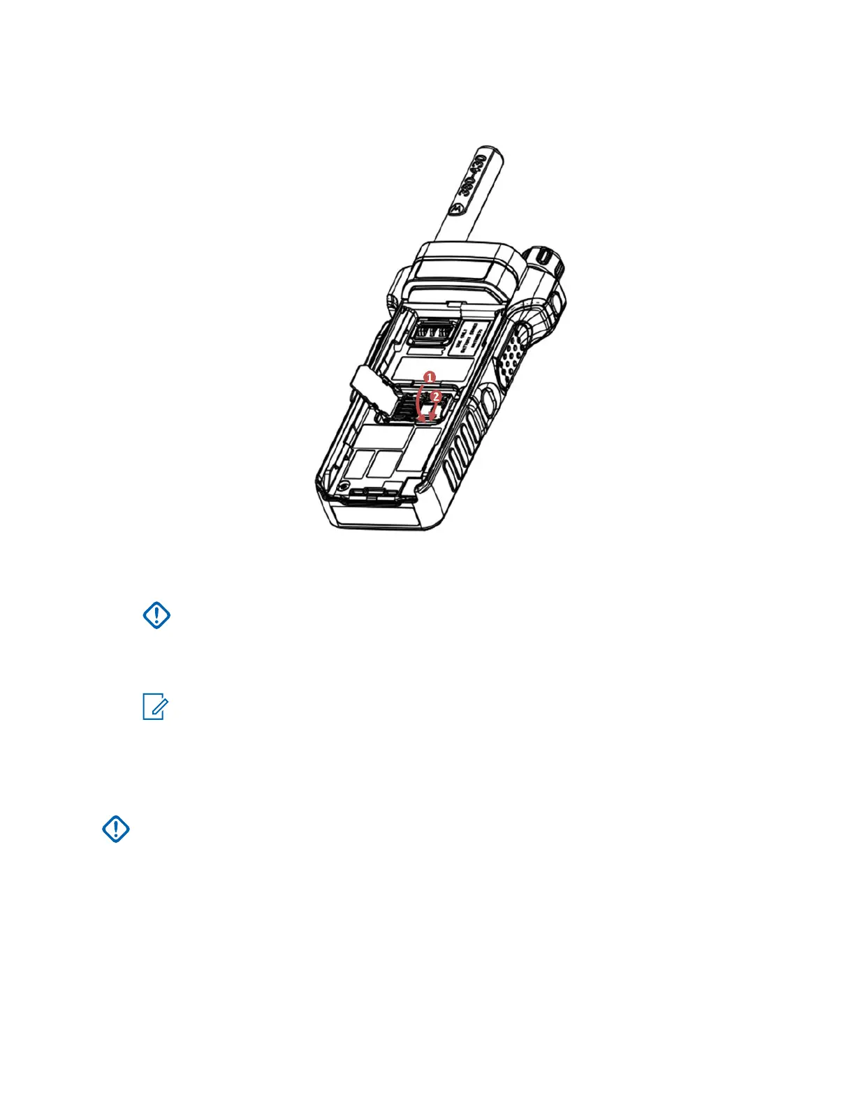 7 Close the SIM card holder and slide the holder toward the PTT side of the radio (as indicated by