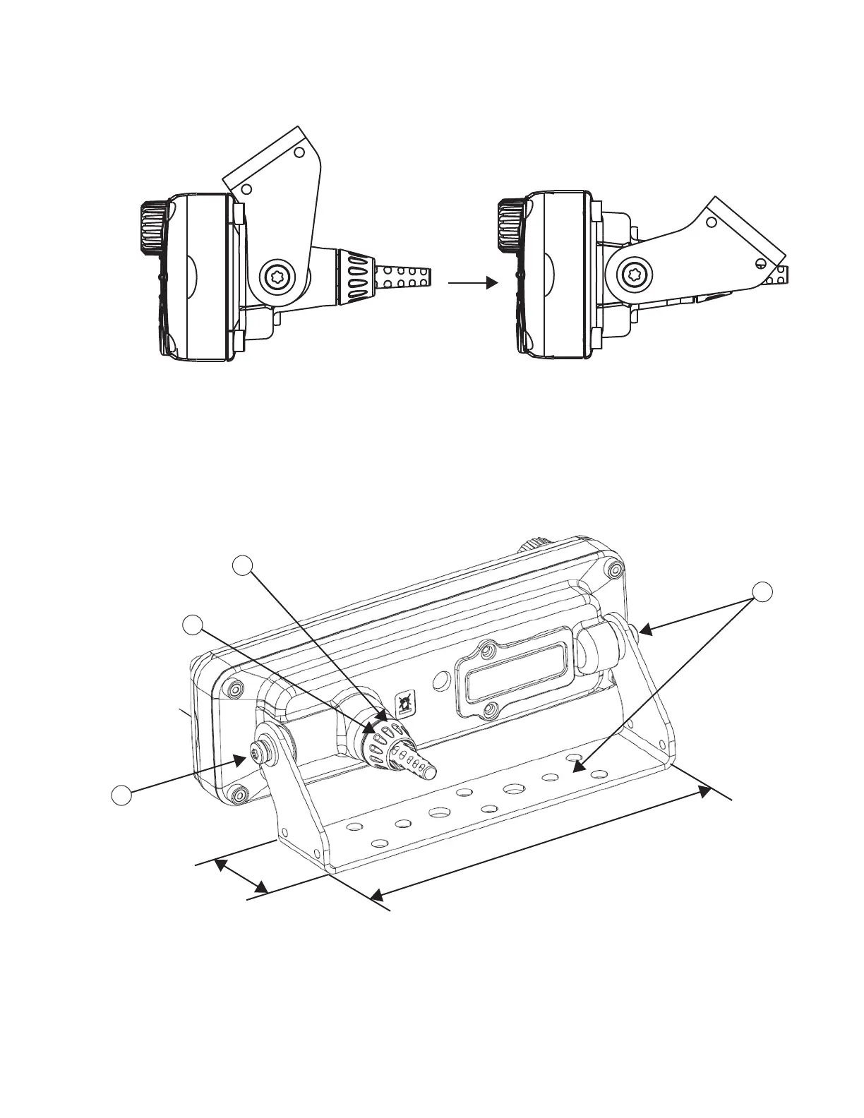 Motorola MXM600 - Mechanical Parts List for IP67 Remote Mount Installation; Figure 42: Downward Movement; Figure 43: IP67 Remote Ethernet Control Head (RECH) Mounted in a Trunnion
