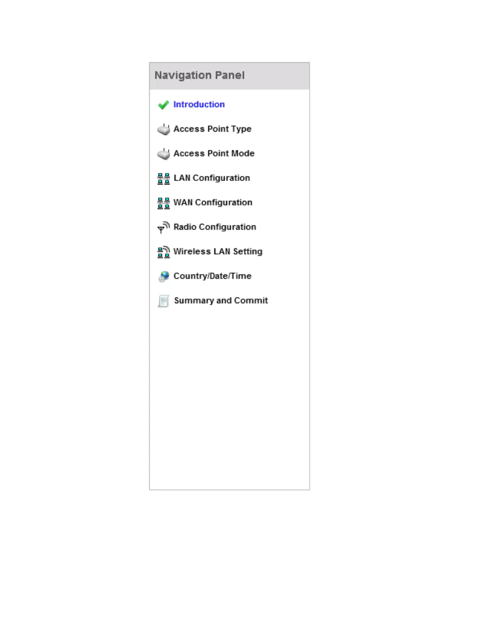 The first page of the Initial AP Setup Wizard displays the Navigation Panel and Introduction